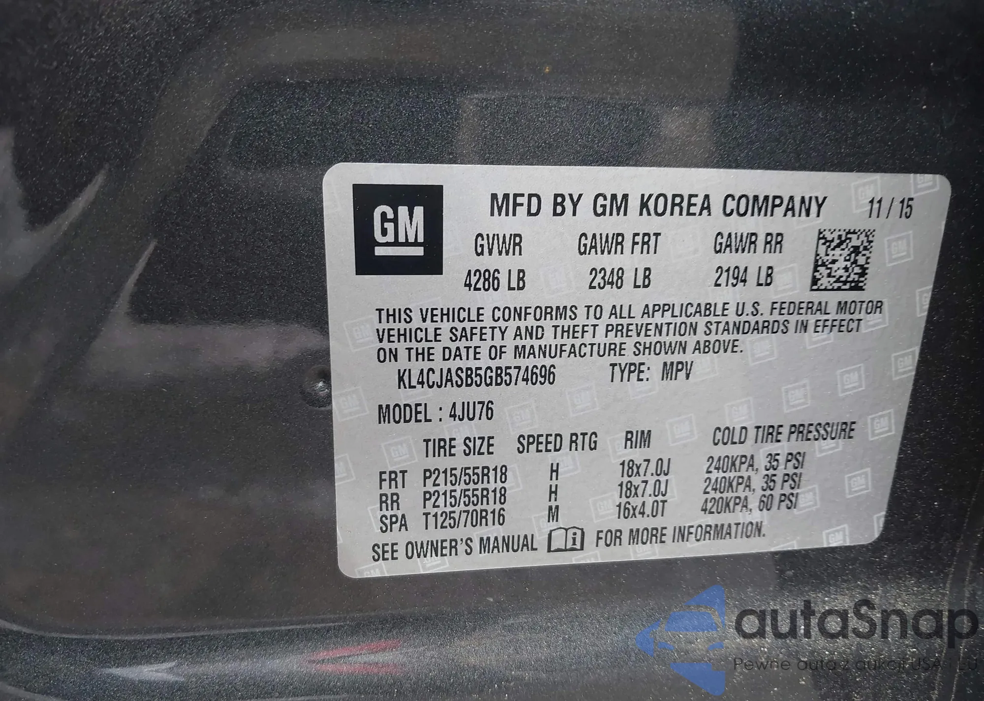 • VIN KL4CJASB5GB574696
