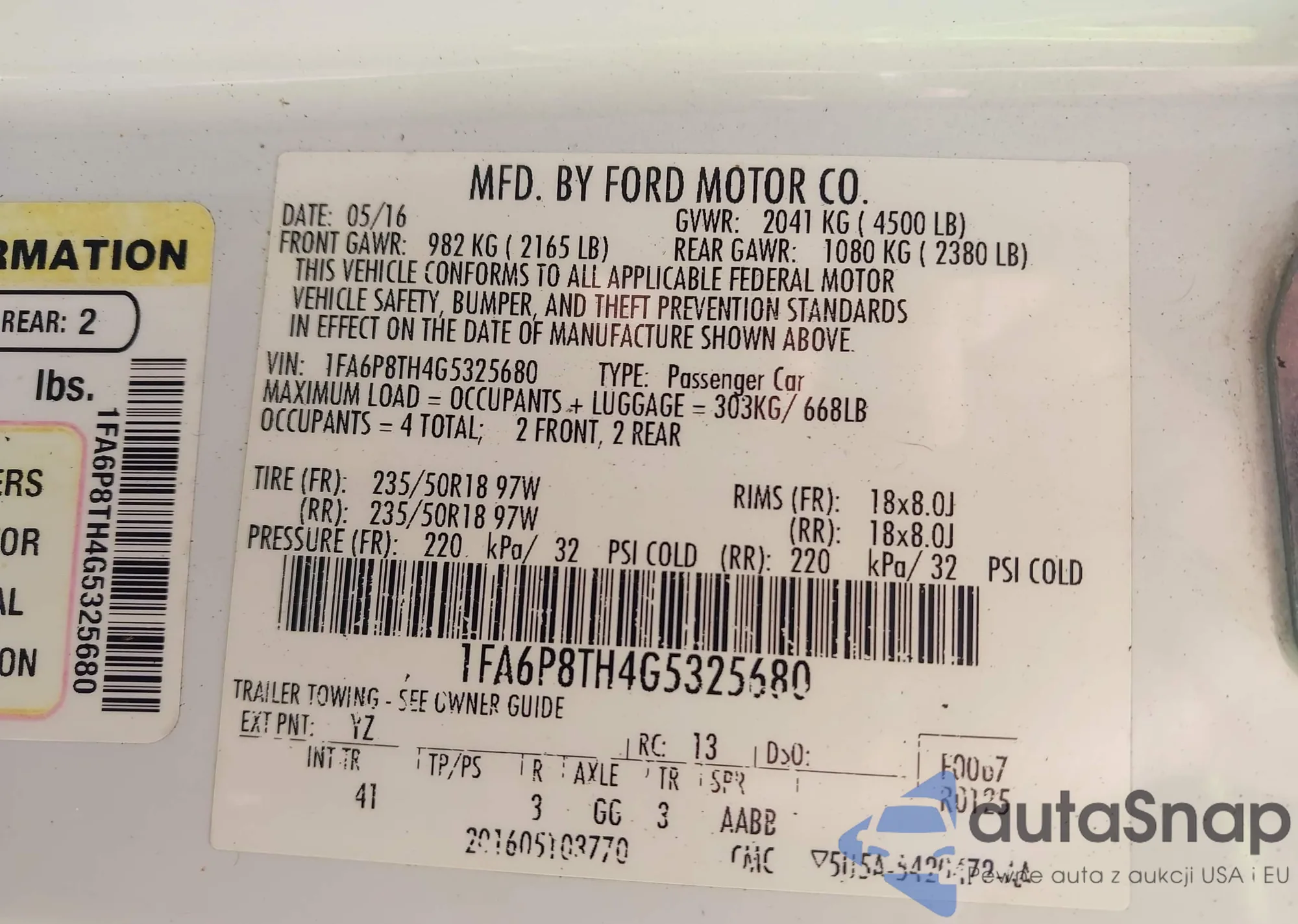 • VIN 1FA6P8TH4G5325680