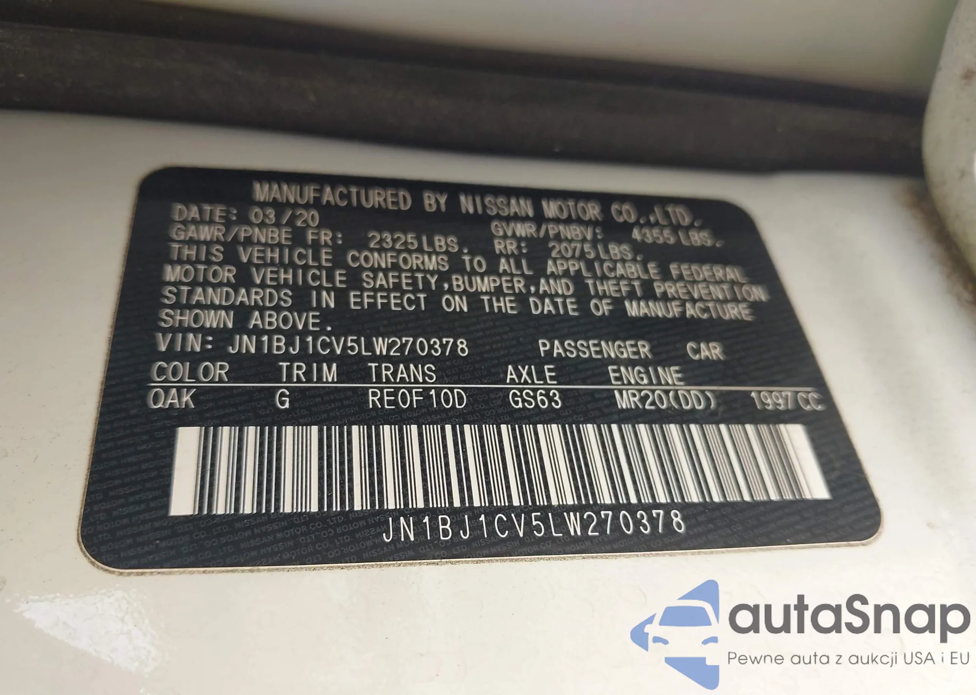 LOT: 43047657 VIN: JN1BJ1CV5LW270378