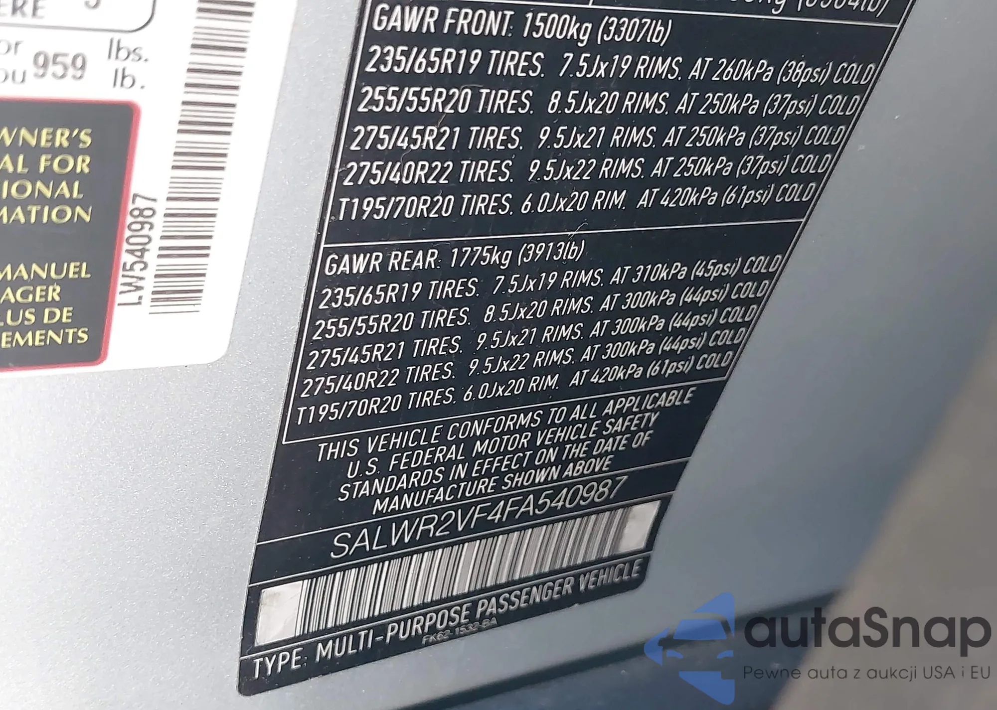• VIN SALWR2VF4FA540987