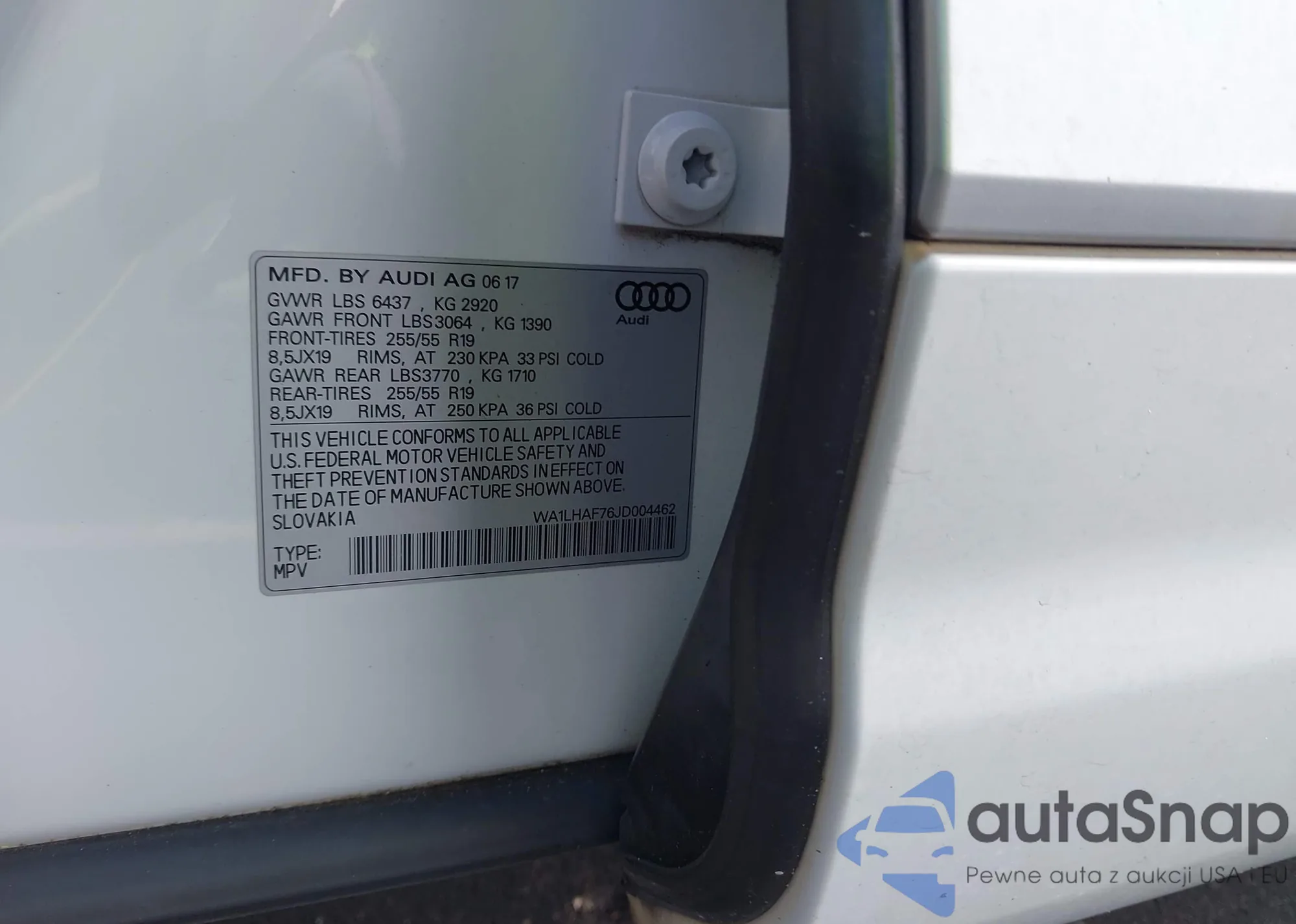 LOT: 43062126 VIN: WA1LHAF76JD004462