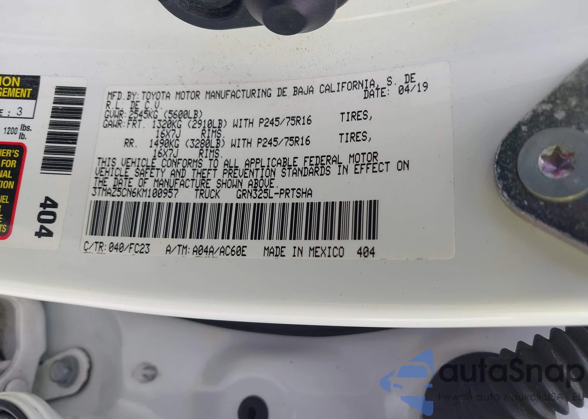 LOT: 43065817 VIN: 3TMAZ5CN6KM100957