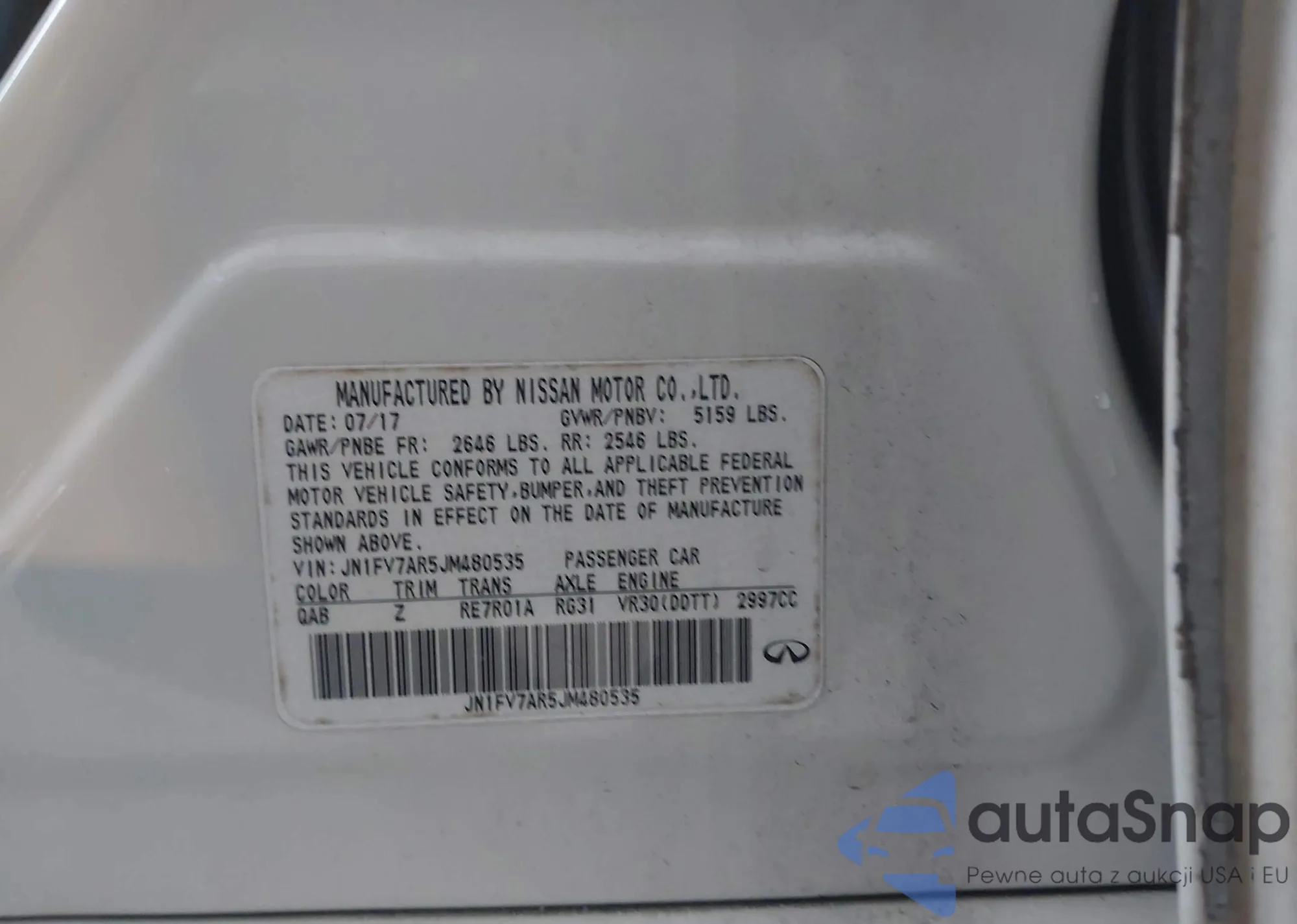 LOT: 43133768 VIN: JN1FV7AR5JM480535
