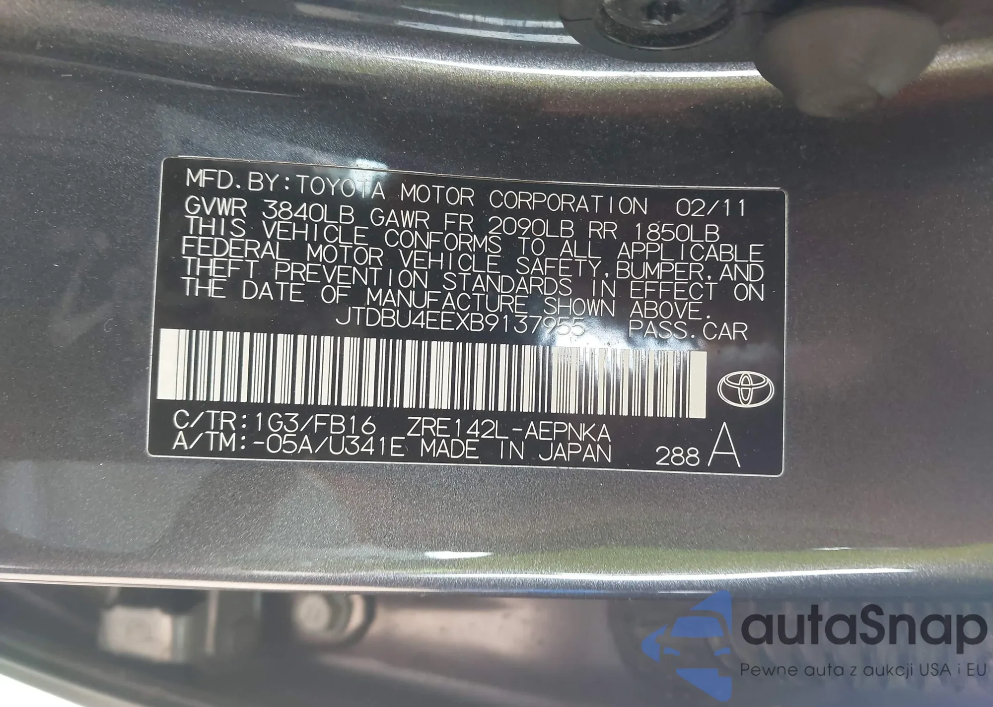 • VIN JTDBU4EEXB9137955