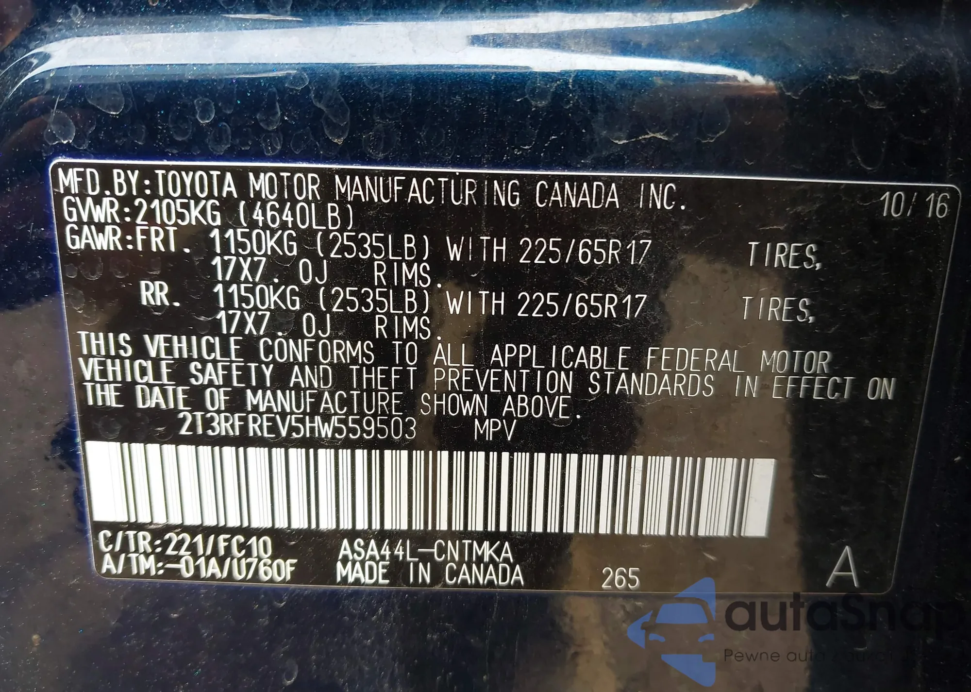 • VIN 2HKRW5H34KH408010