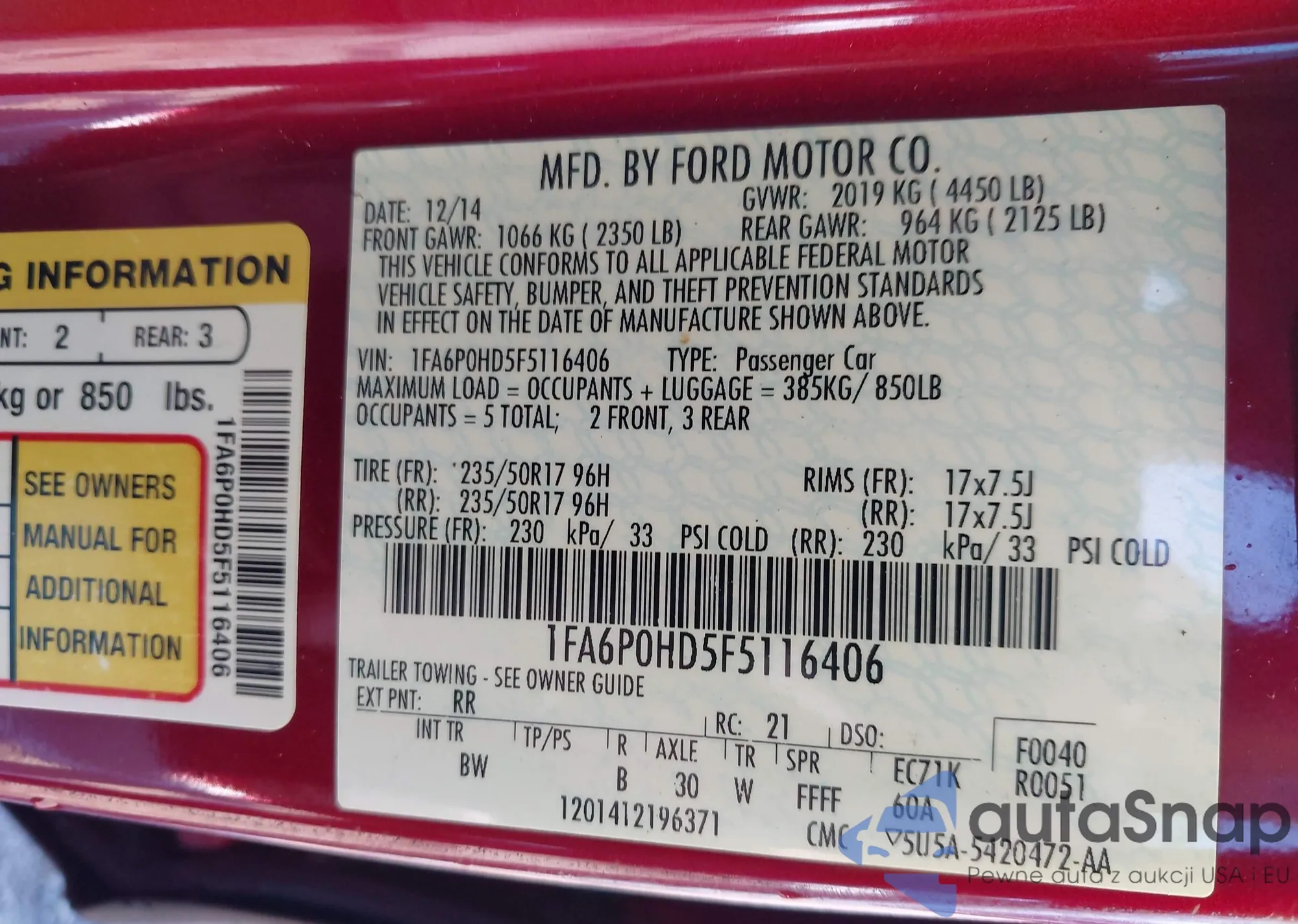 • VIN 5UXZV4C55CL767500