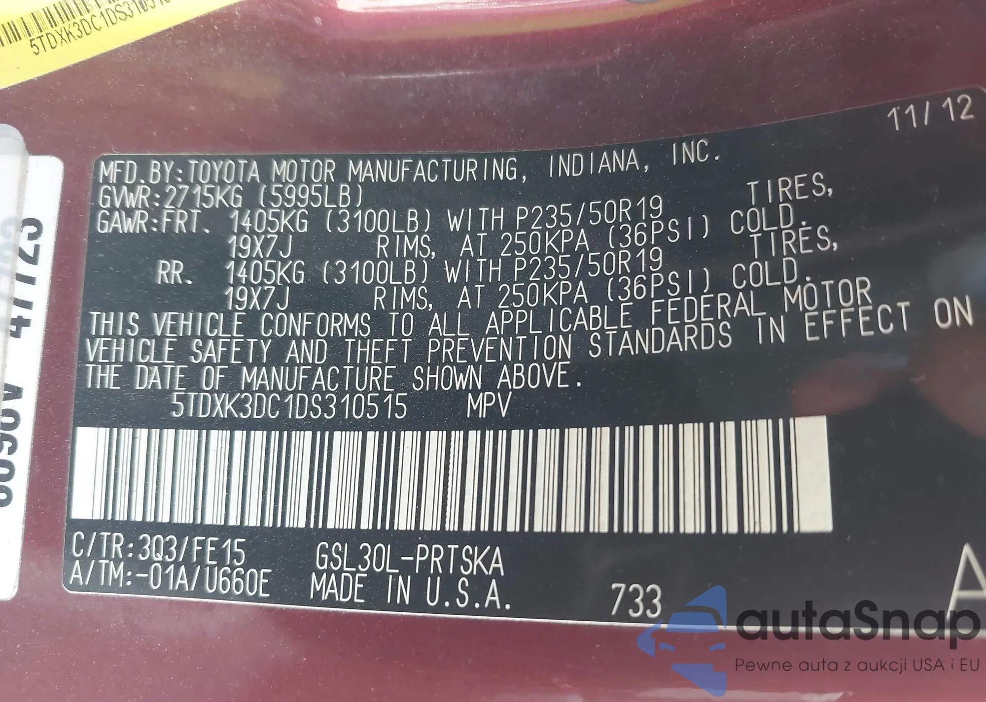 • VIN 5TDZZRAHXNS541065