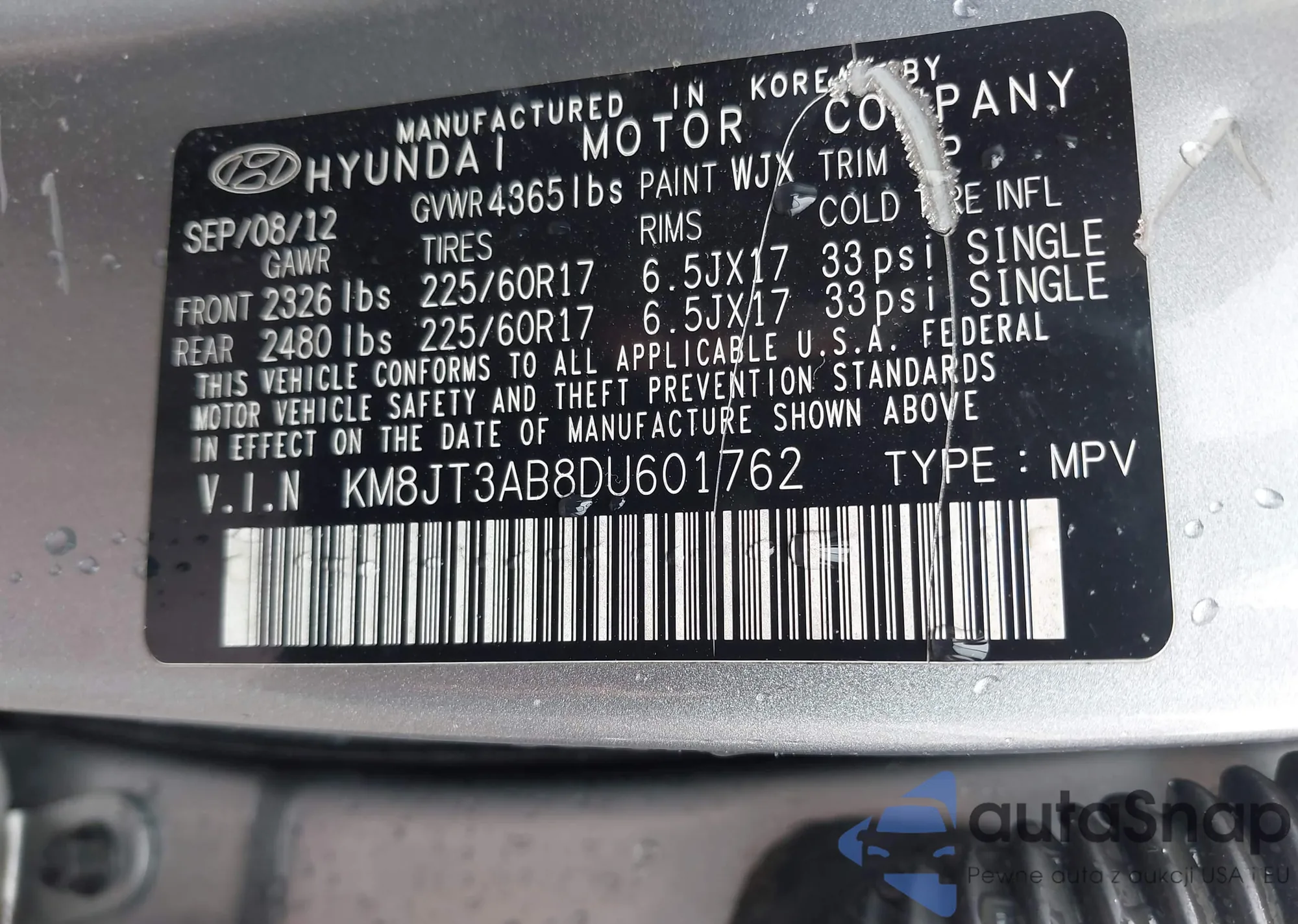 LOT: 43186439 VIN: 2HNYD2H33CH508426