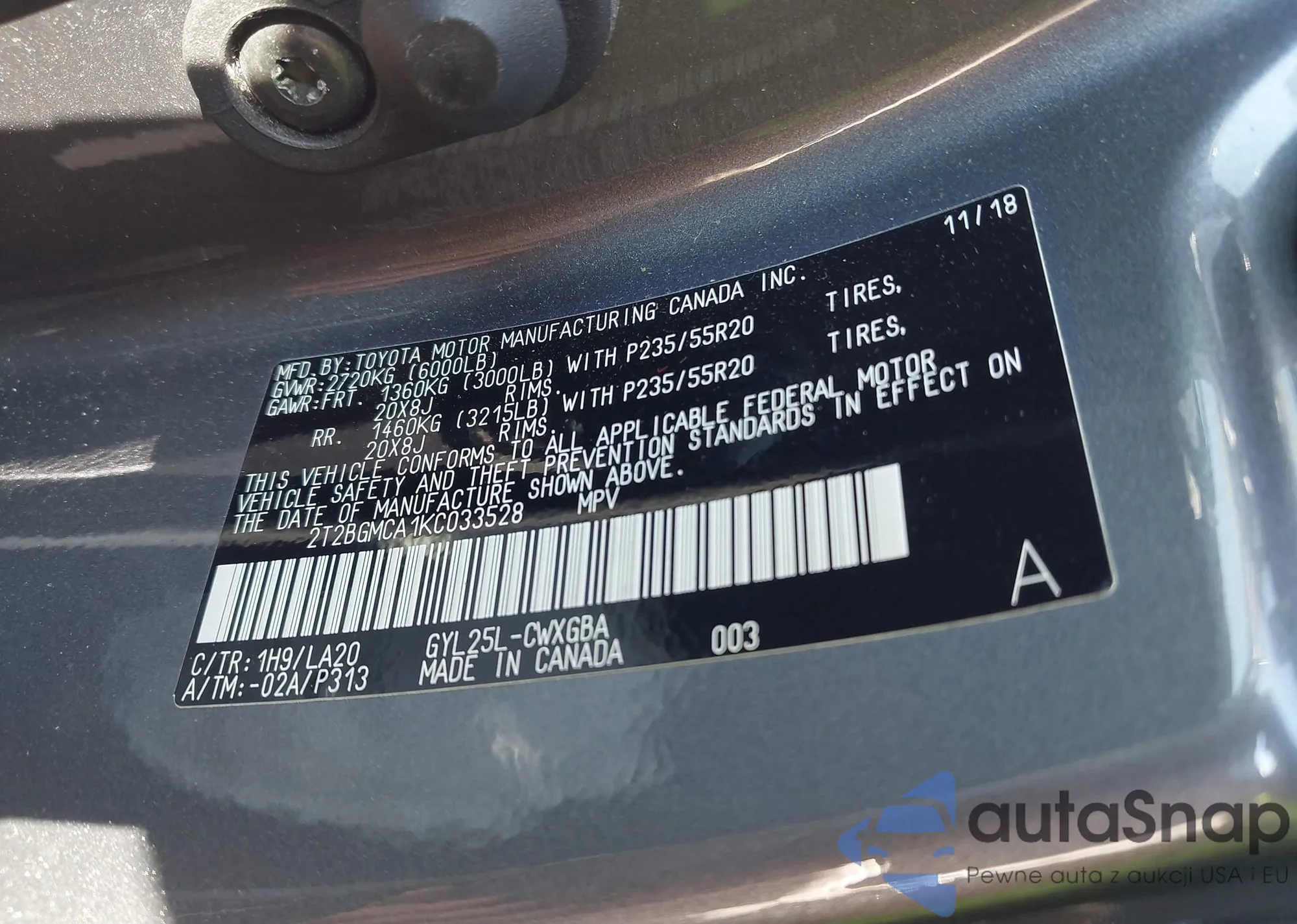 • VIN 2T2BGMCA1KC033528