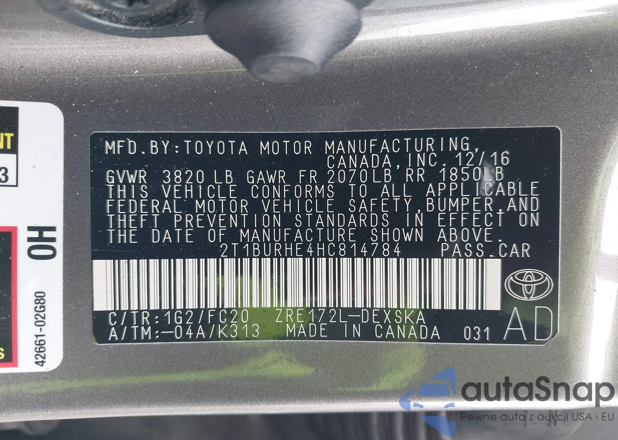 LOT: 43172829 VIN: 2T1BURHE4HC814784