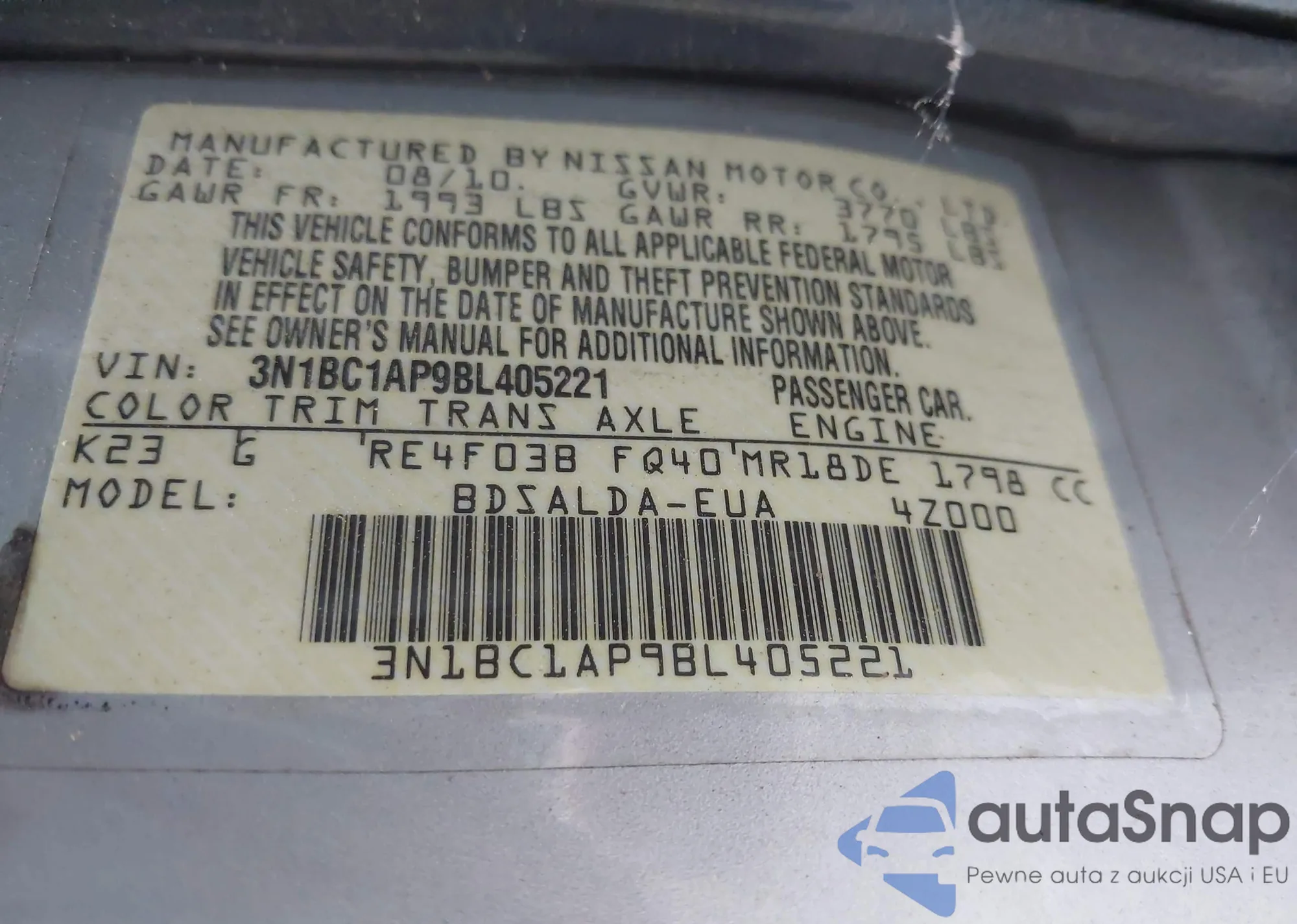 • VIN 3N1BC1AP9BL405221