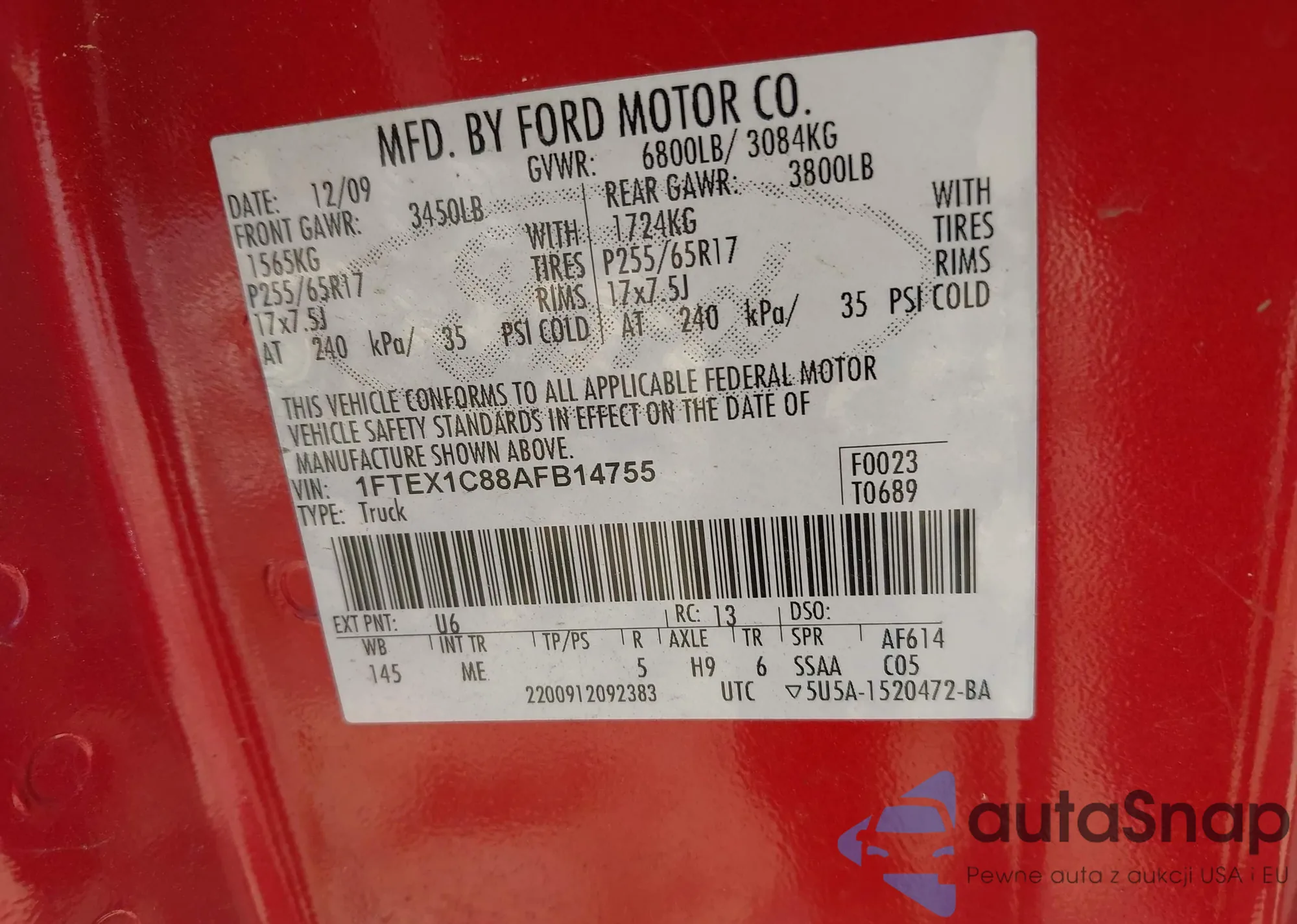 • VIN 1FTEX1C88AFB14755