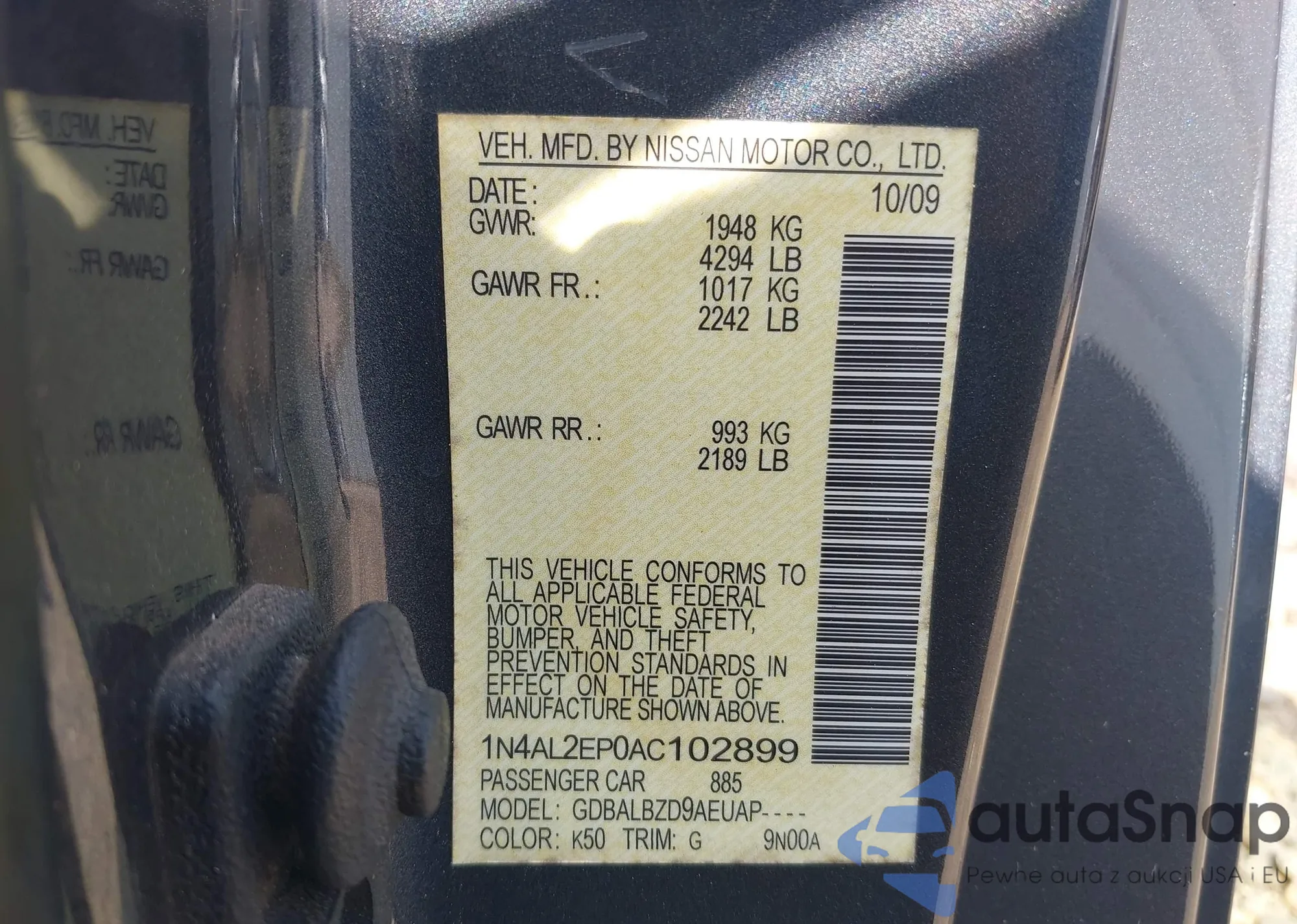 • VIN 1N4AL2EP0AC102899