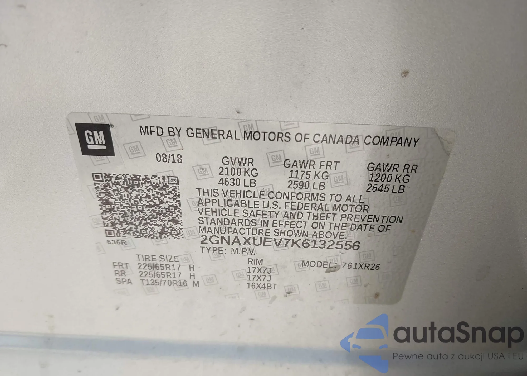 LOT: 42779335 VIN: 2GNAXUEV7K6132556