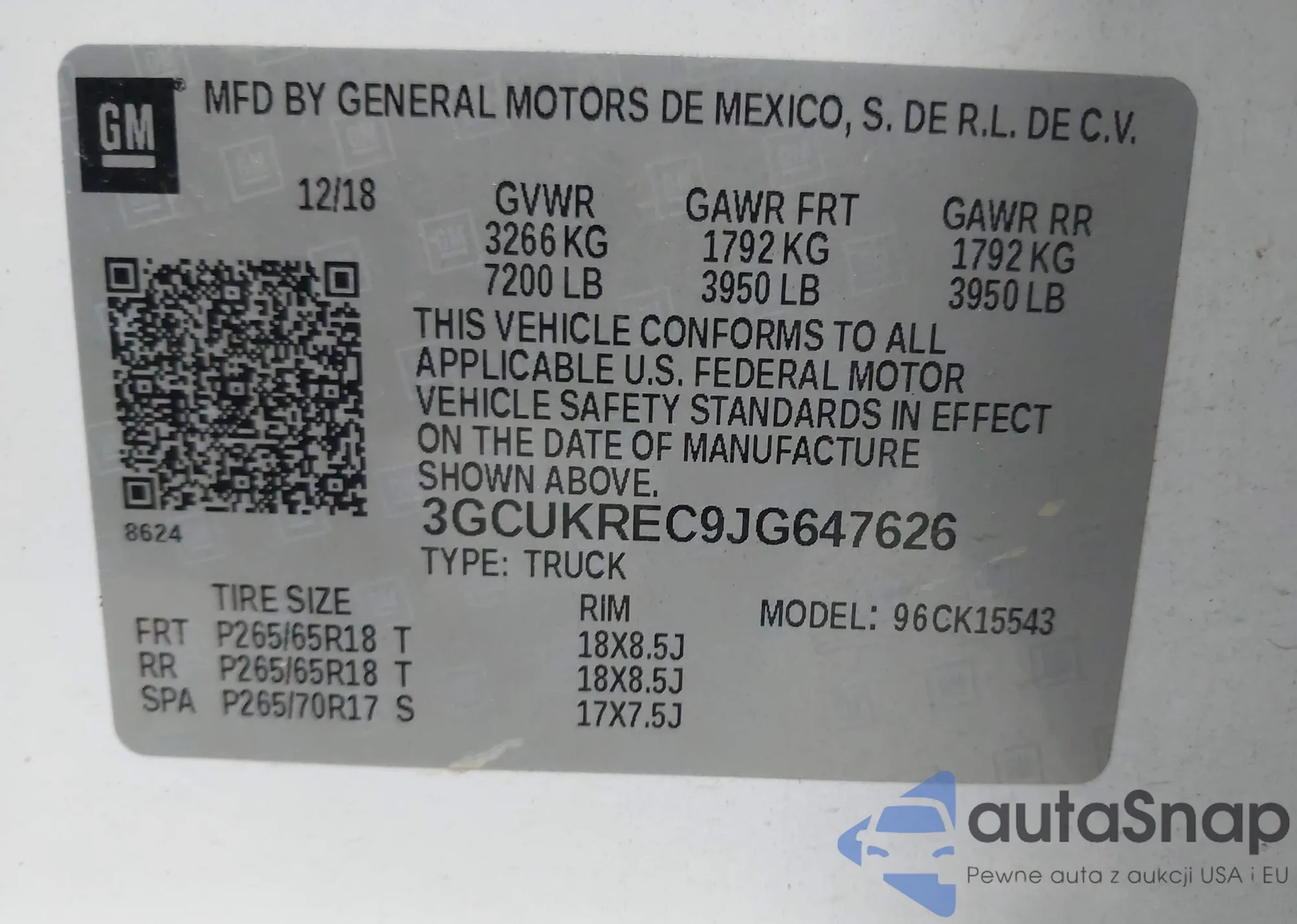 • VIN 3GCUKREC9JG647626