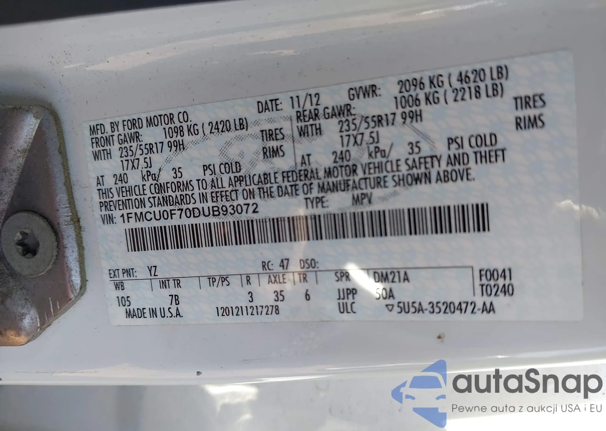 • VIN 1FMCU0F70DUB93072