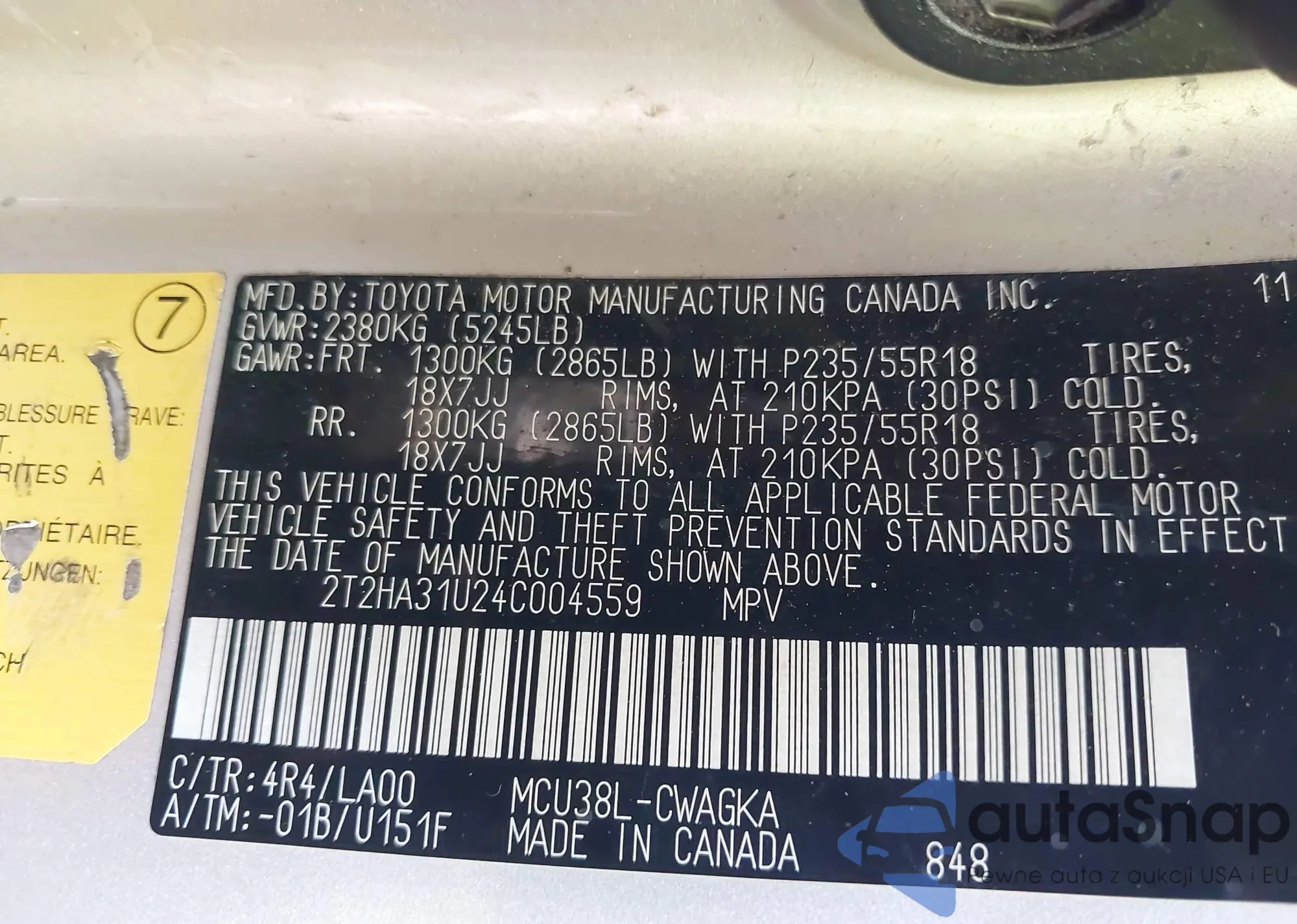 • VIN 2T2HA31U24C004559