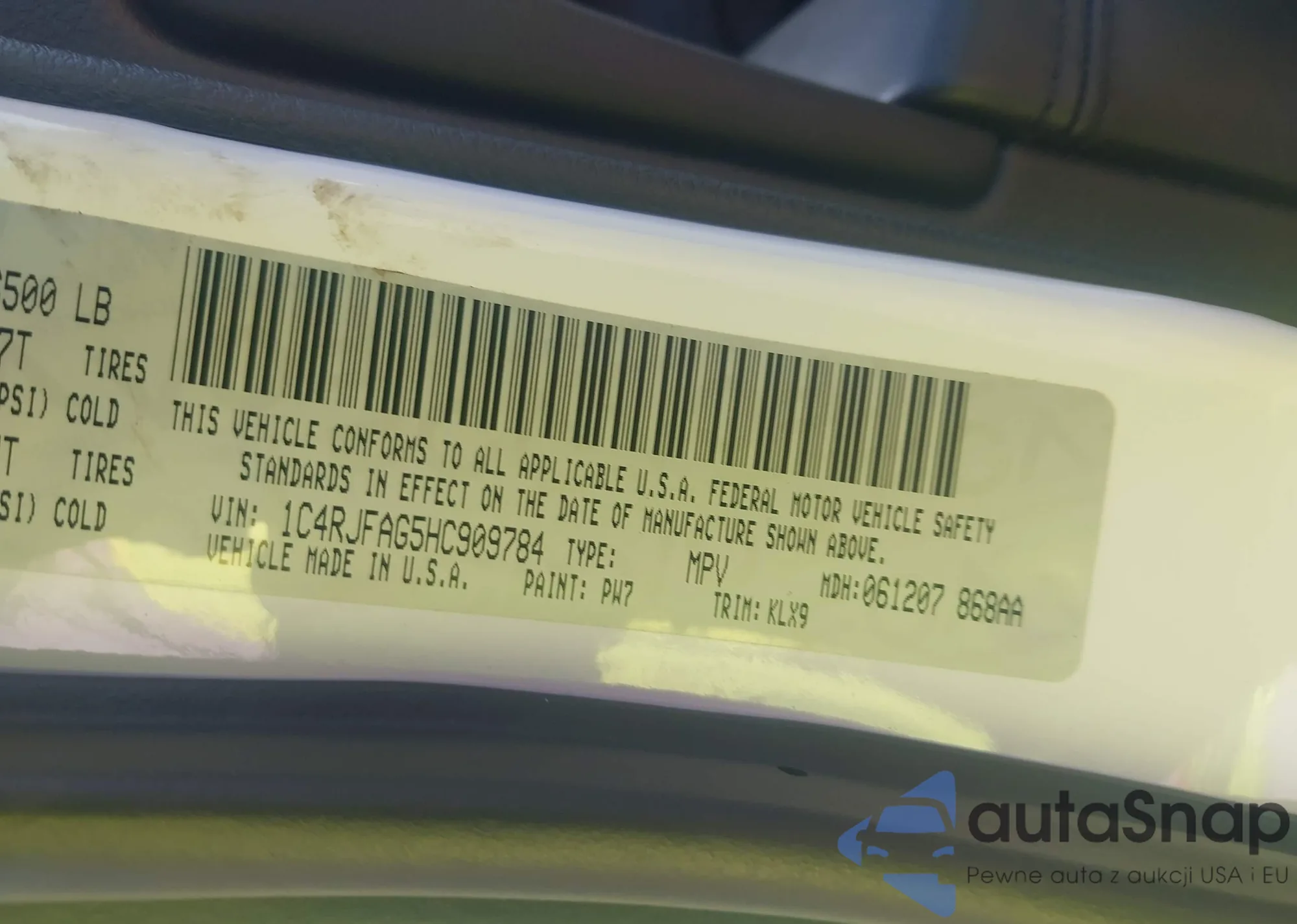 • VIN 1C4RJFAG5HC909784
