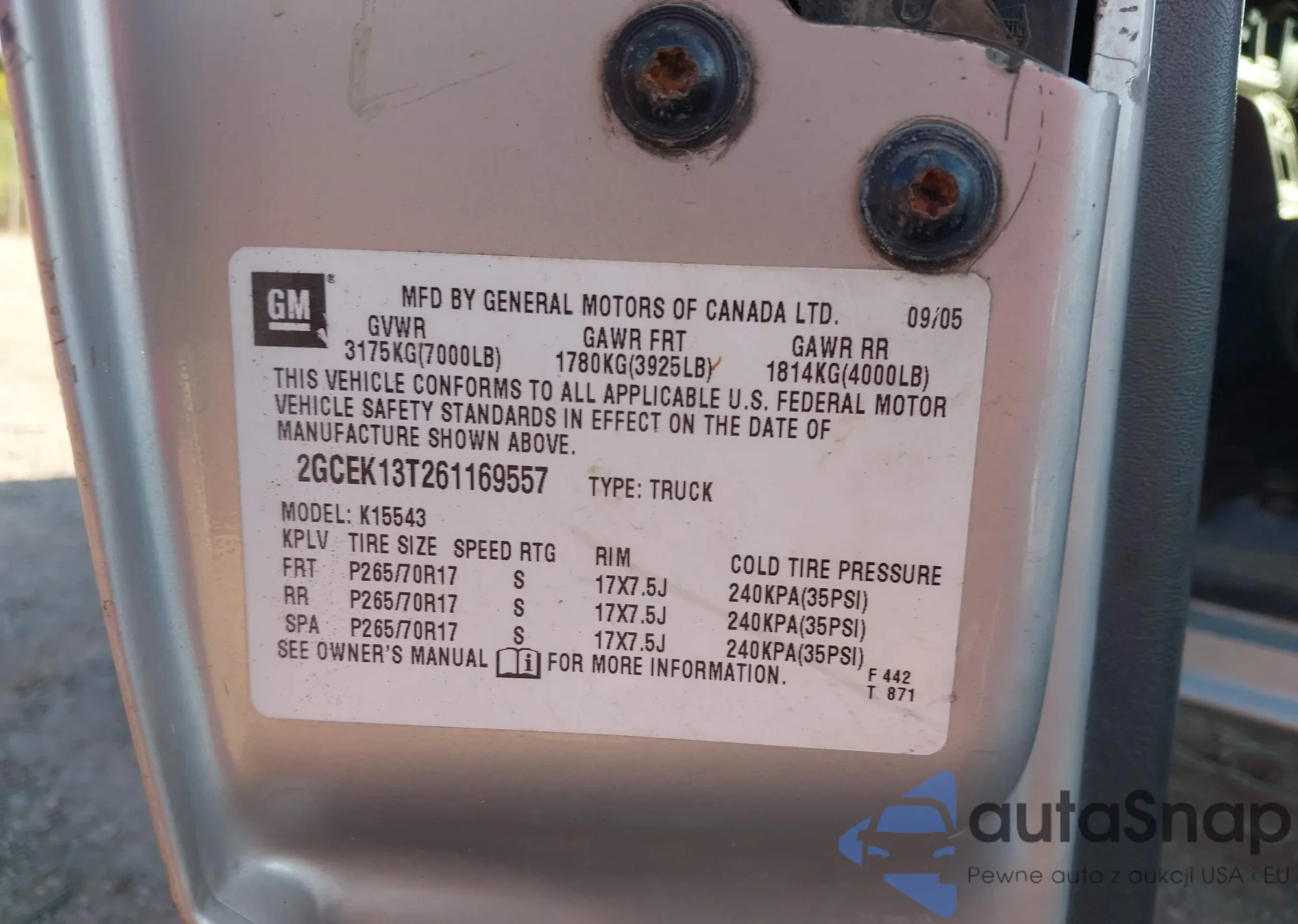 • VIN 2GCEK13T261169557