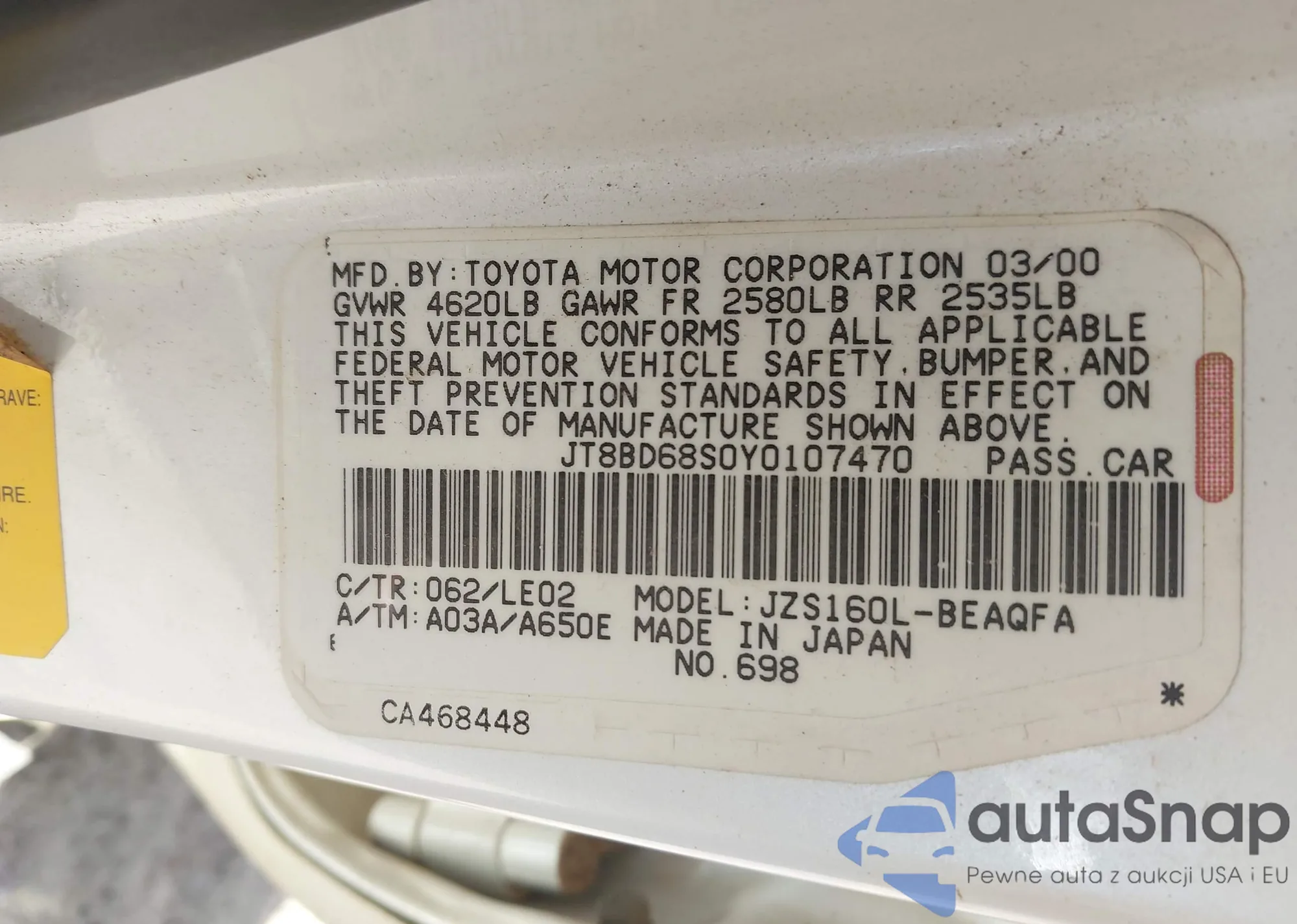 LOT: 43201081 VIN: JT8BD68S0Y0107470