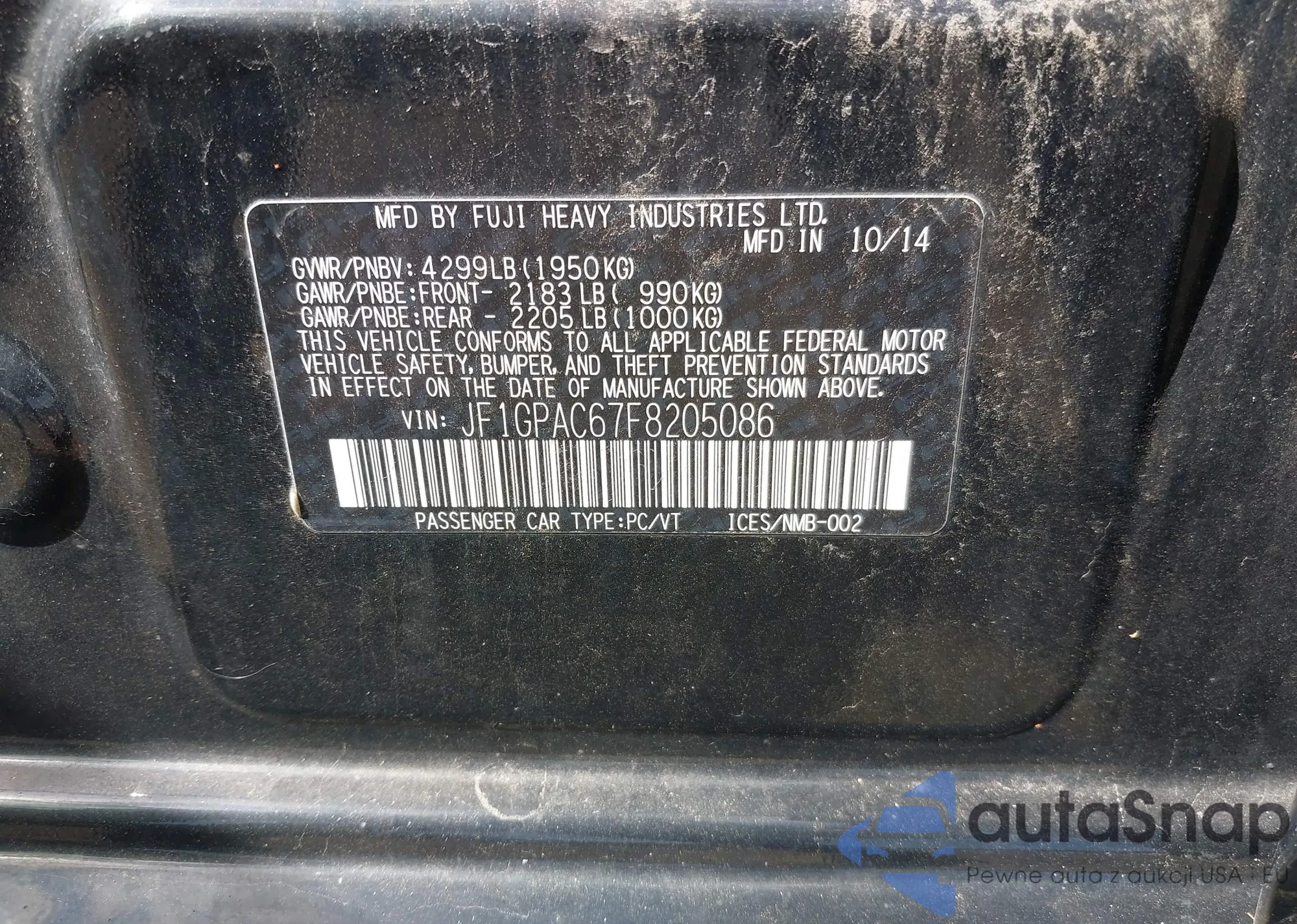 • VIN JF1GPAC67F8205086