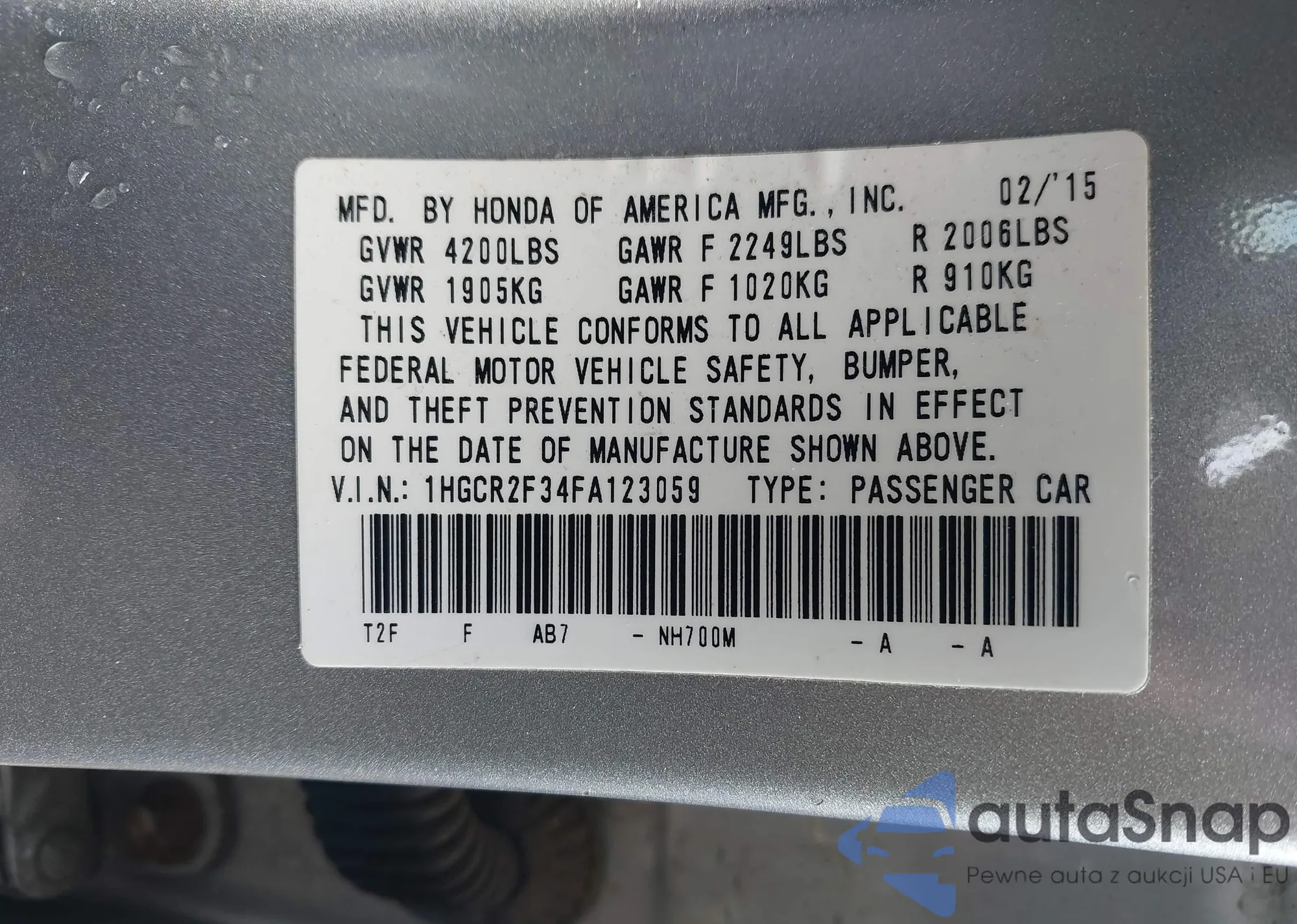 • VIN 1HGCR2F34FA123059