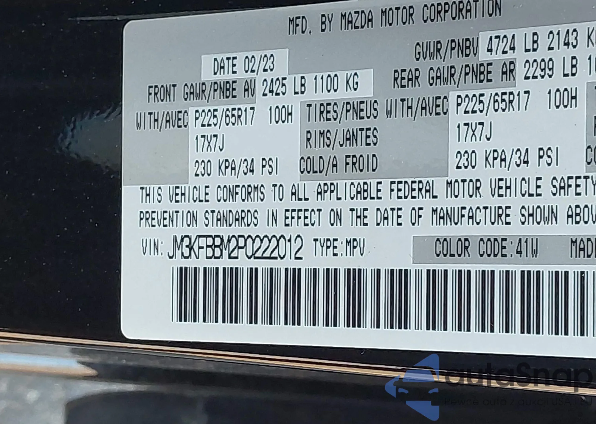 LOT: 43009040 VIN: JM3KFBBM2P0222012