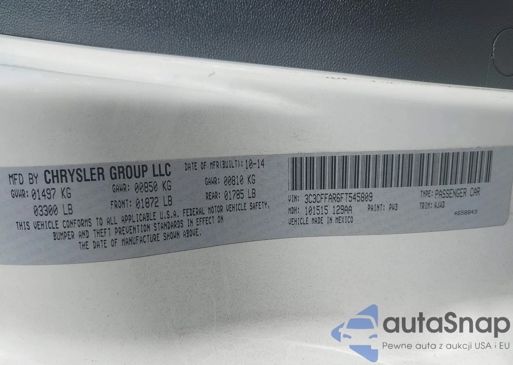 LOT: 43086649 VIN: 3C3CFFAR6FT545809
