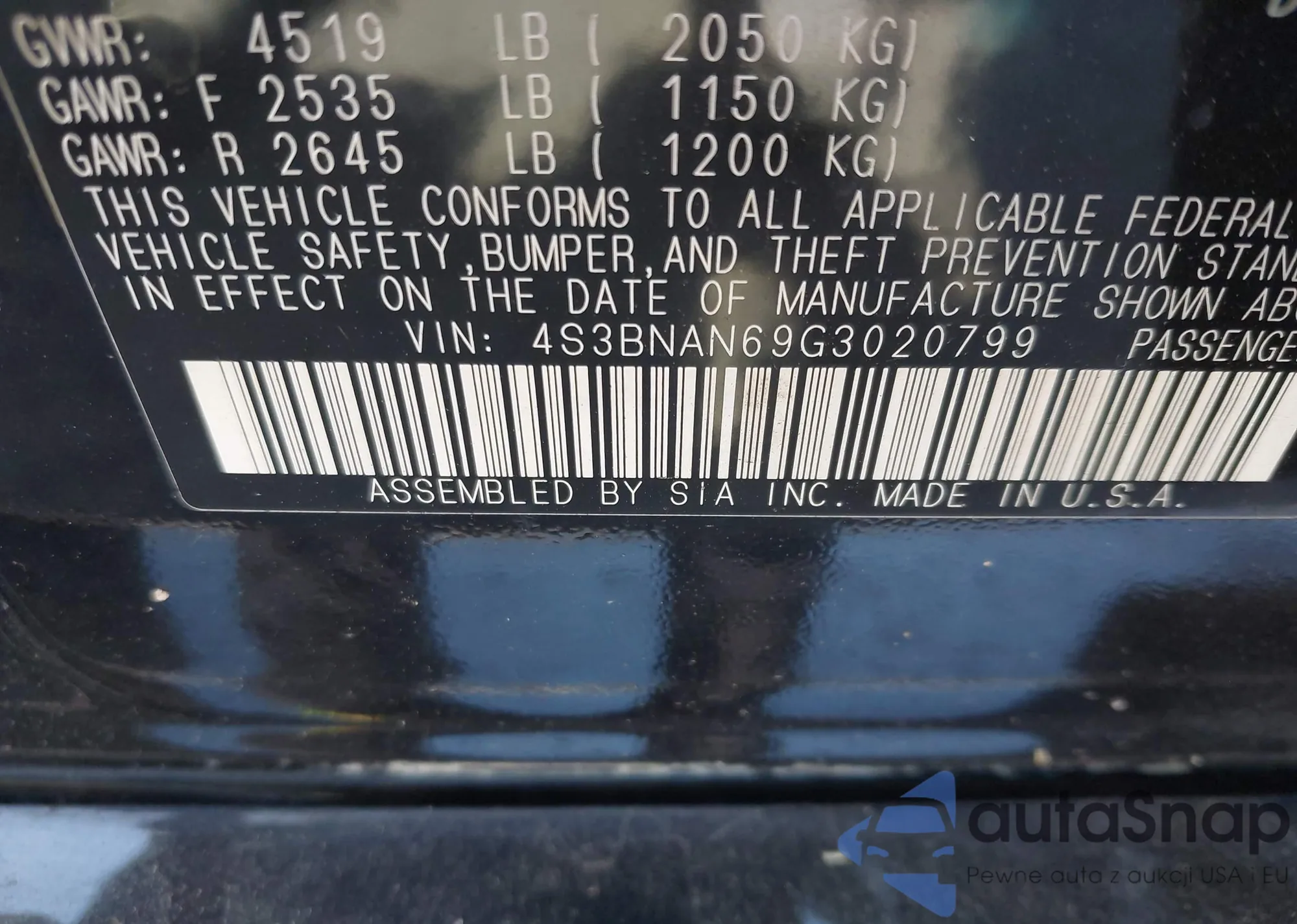 • VIN 4S3BNAN69G3020799