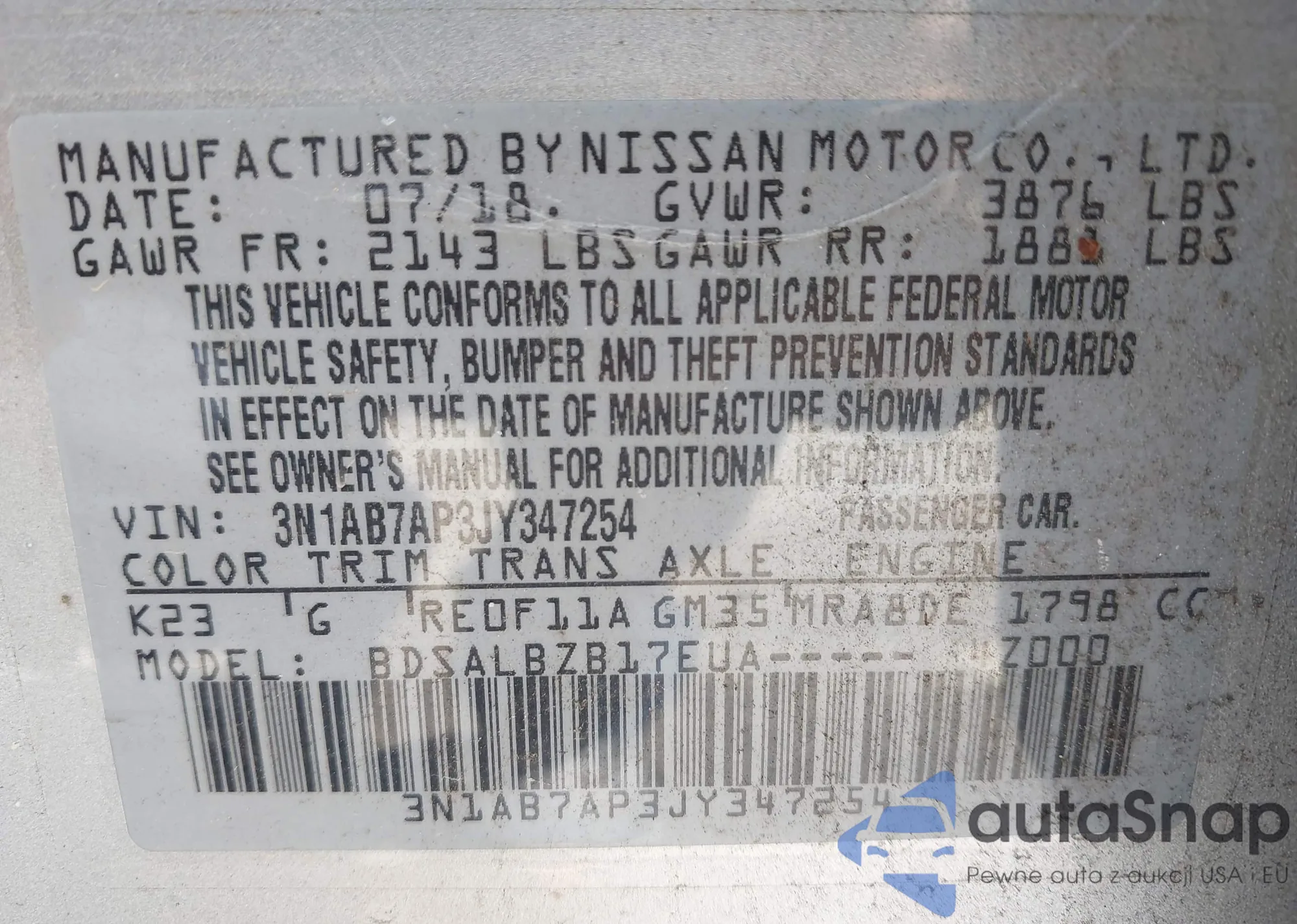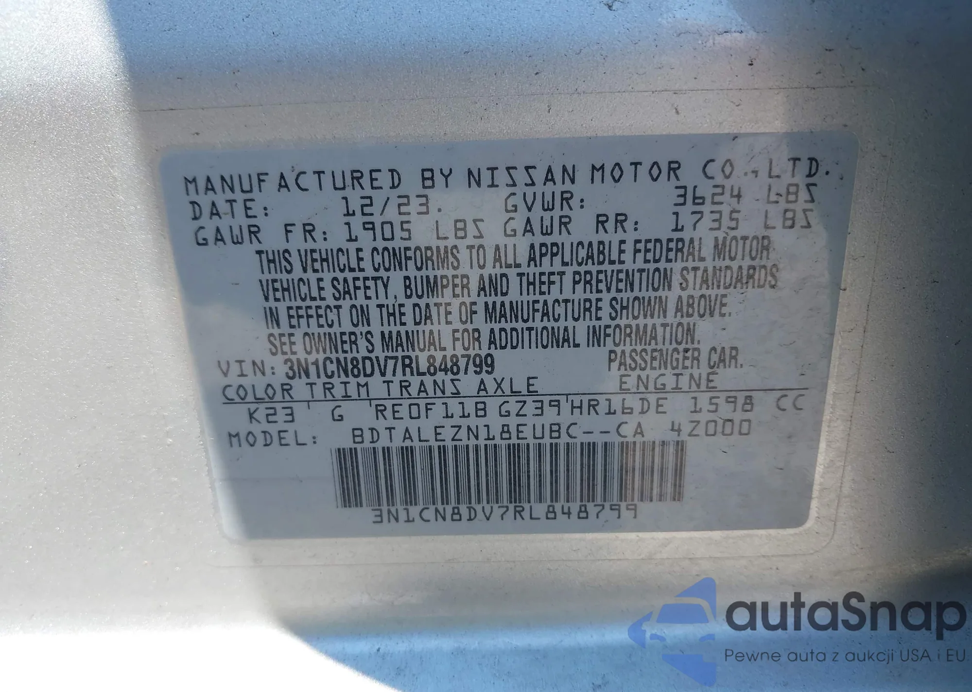 • VIN 3N1CN8DV7RL848799