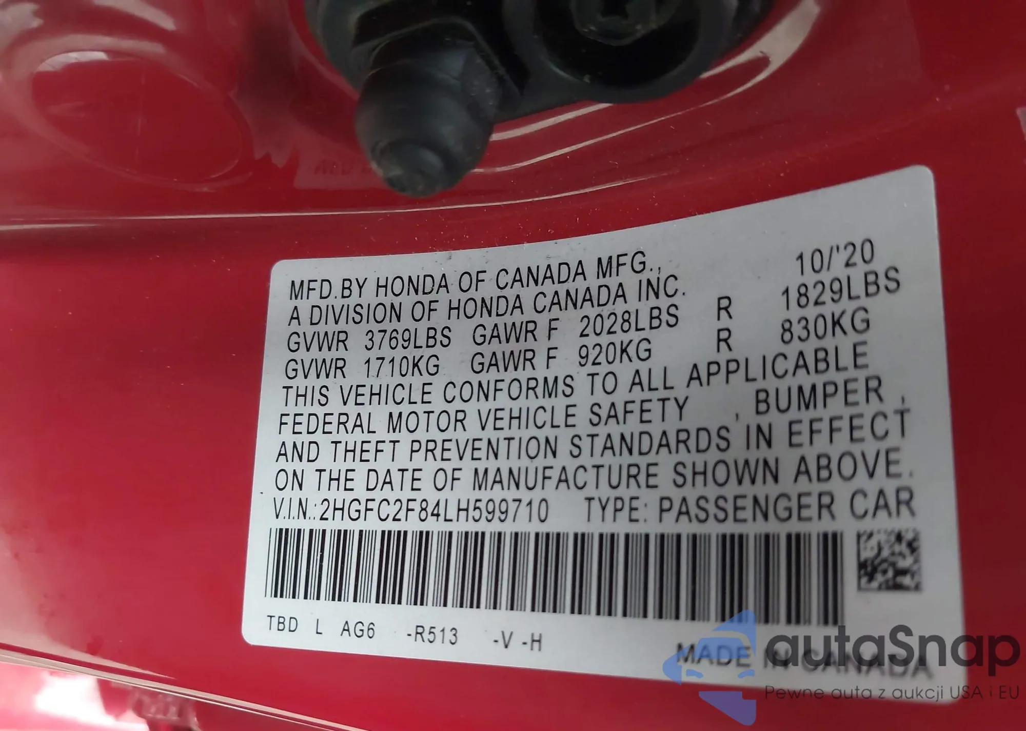 • VIN 2HGFC2F84LH599710