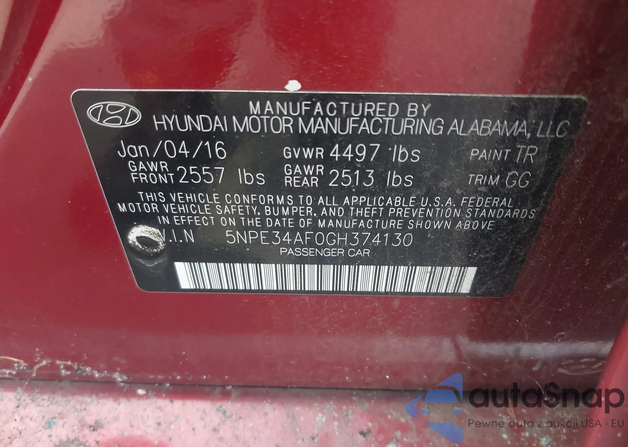 • VIN 5NPE34AF0GH374130