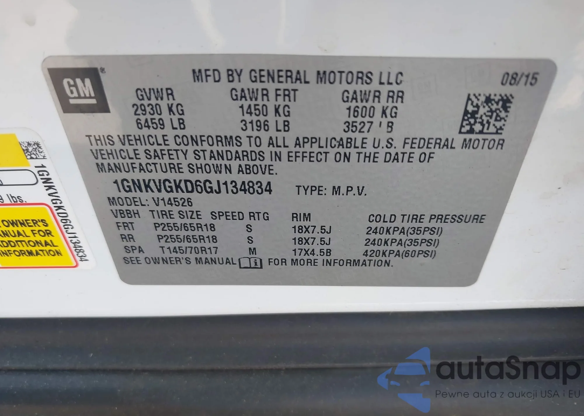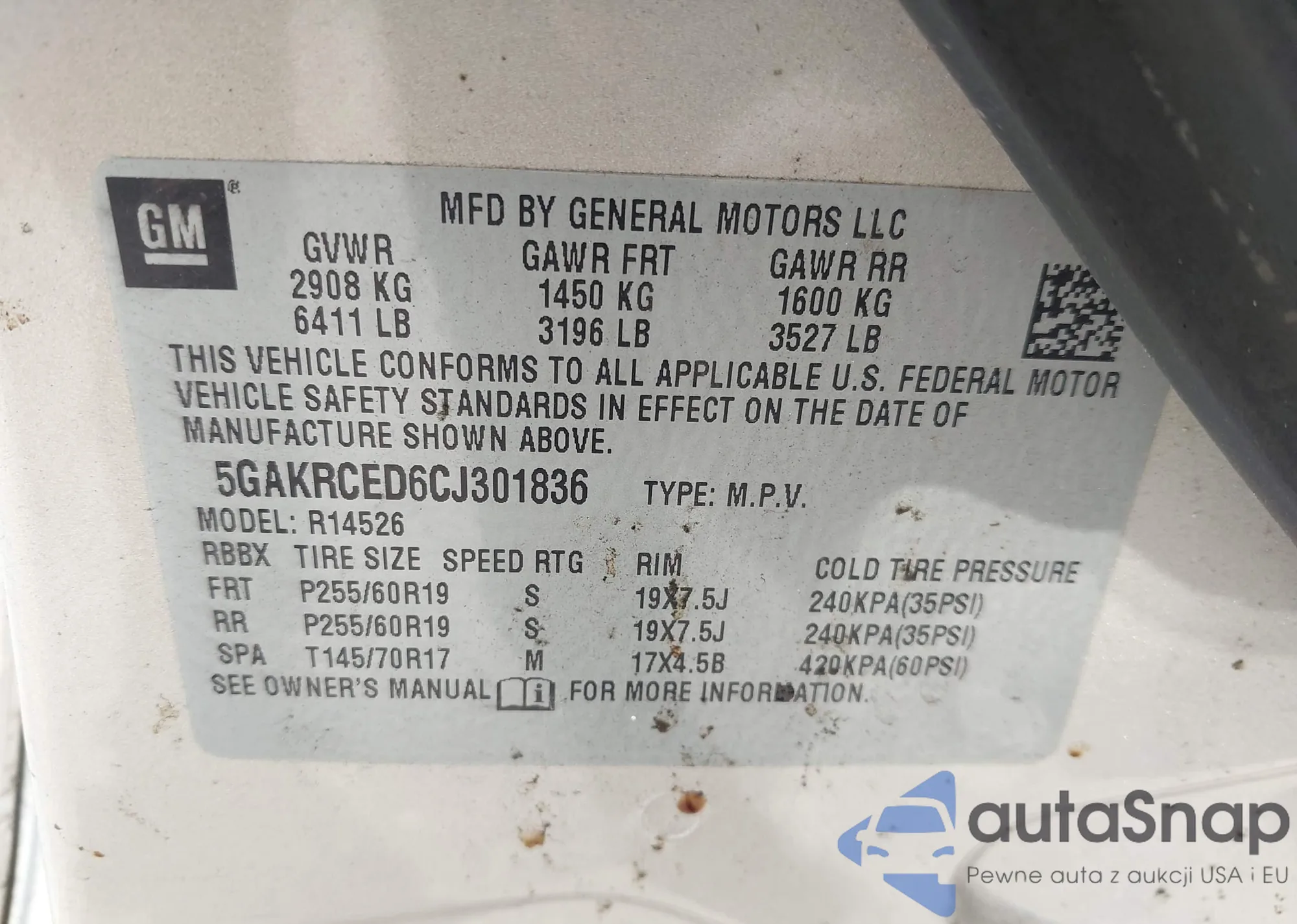 LOT: 42955486 VIN: 1GCPKSE34BF138633