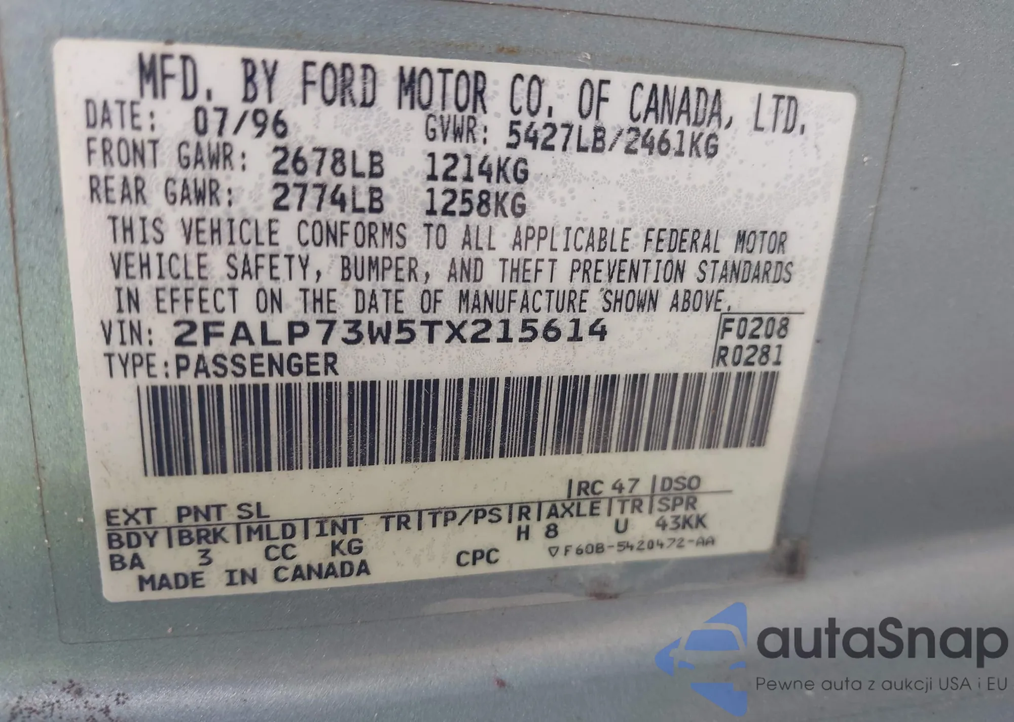 • VIN 2FALP73W5TX215614