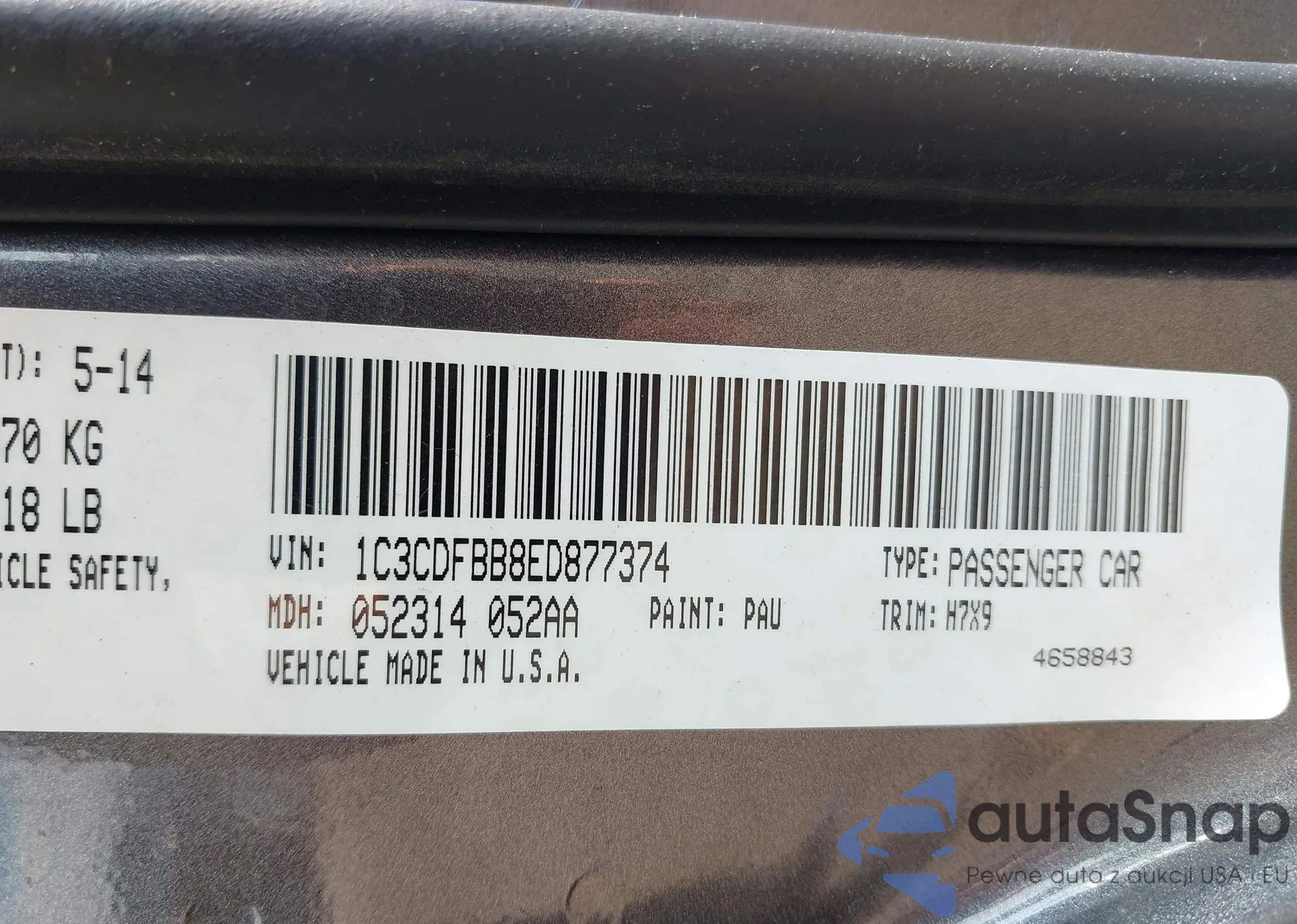 LOT: 43000918 VIN: 1C3CDFBB8ED877374