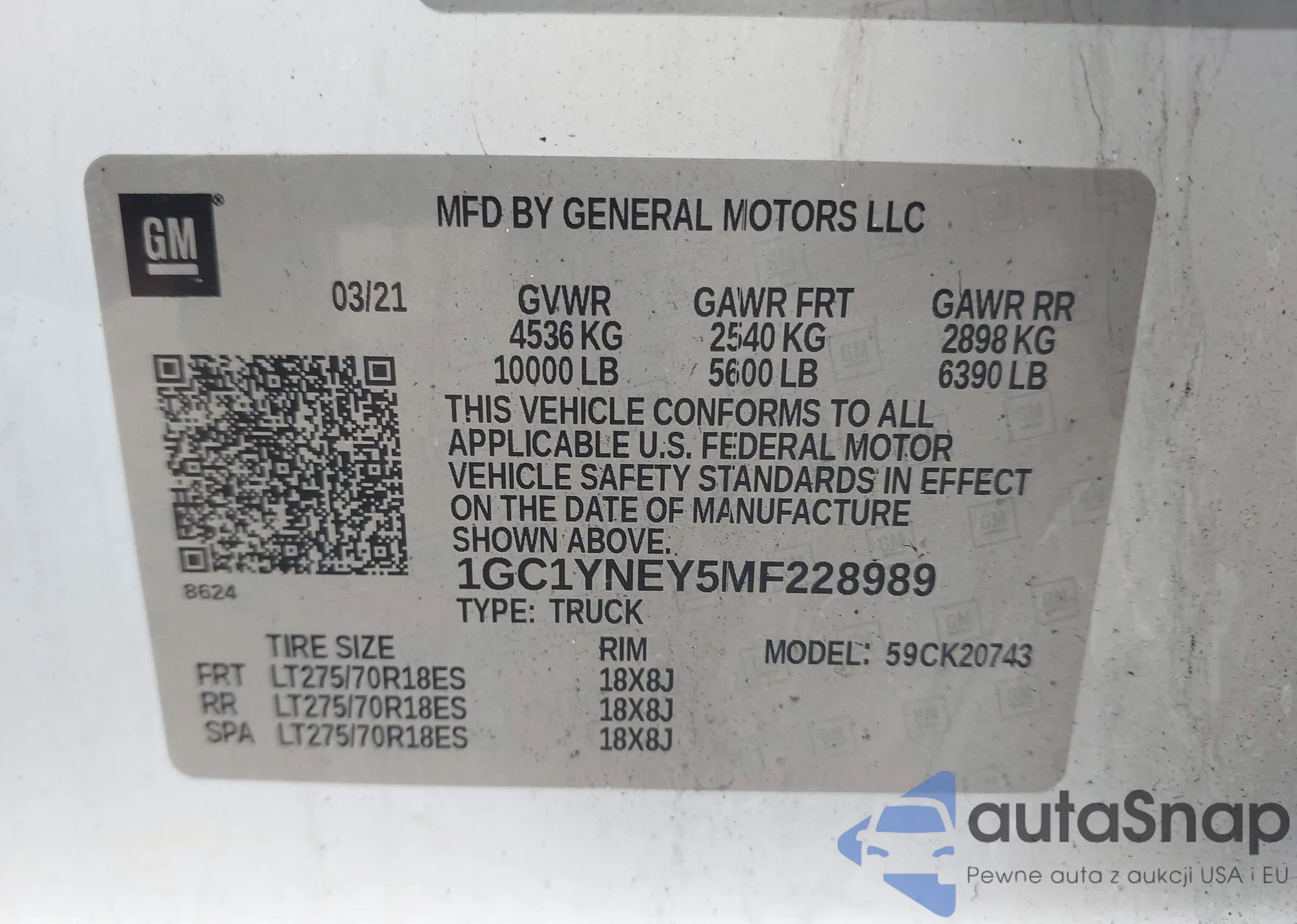 LOT: 43004874 VIN: 1GC1YNEY5MF228989