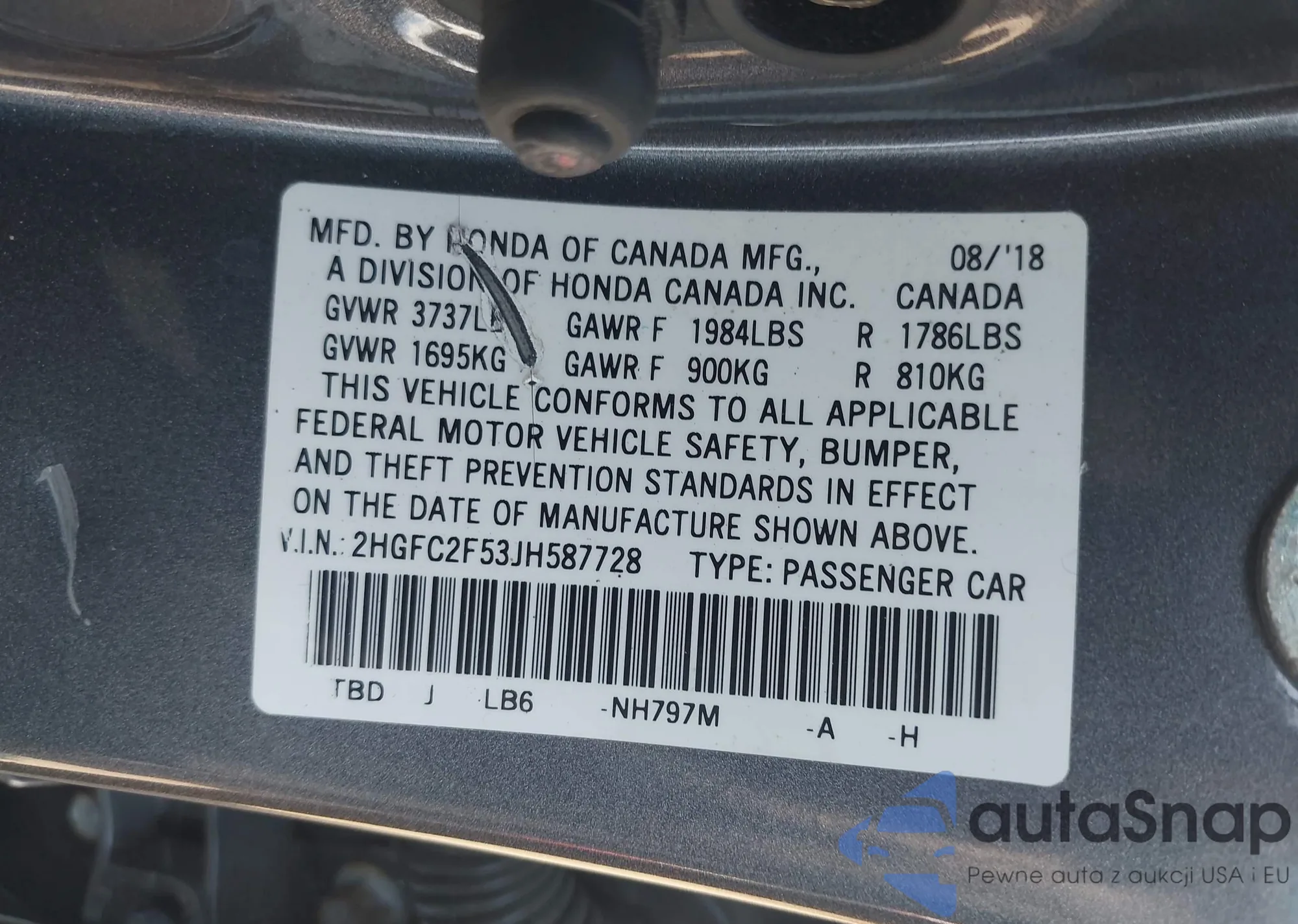 • VIN 2HGFC2F53JH587728
