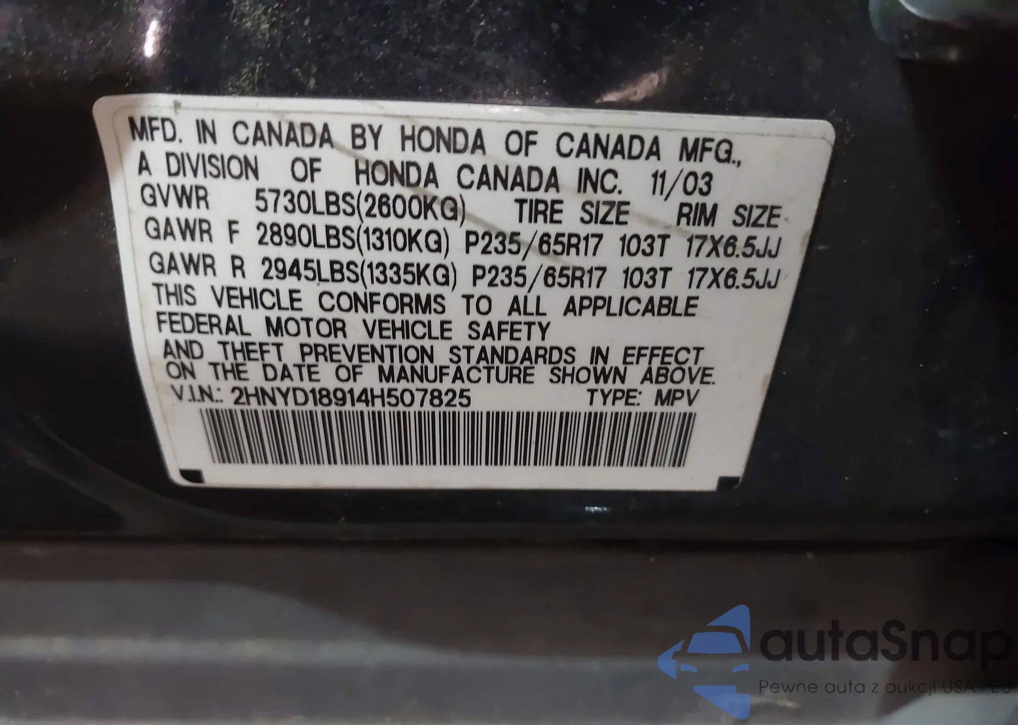 • VIN 5FNRL18874B083755