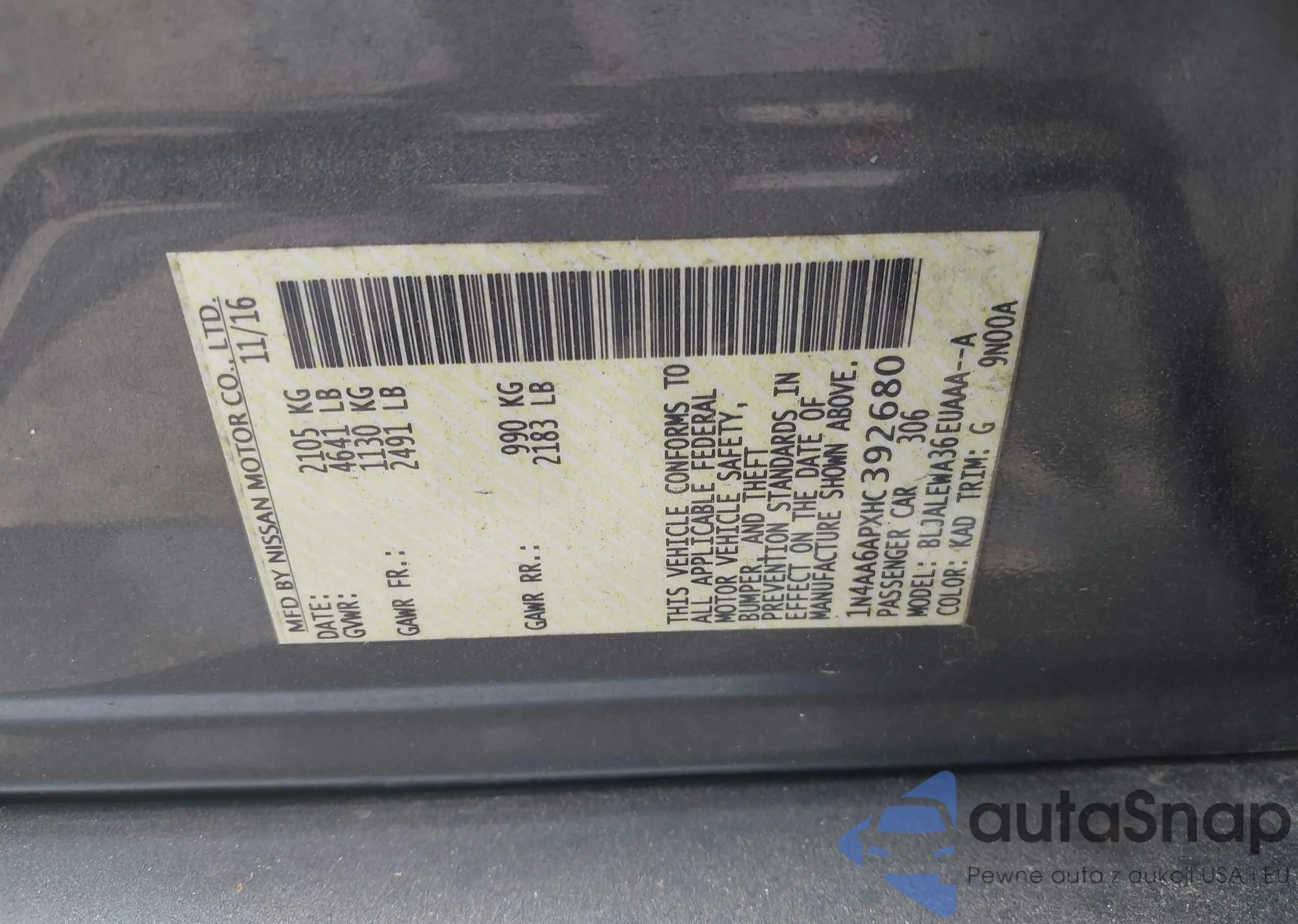 • VIN 1N4AA6APXHC392680