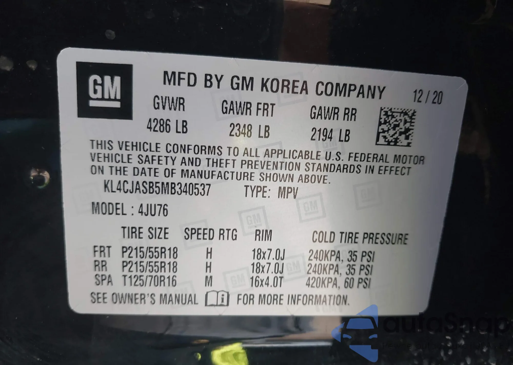 • VIN KL4CJASB5MB340537