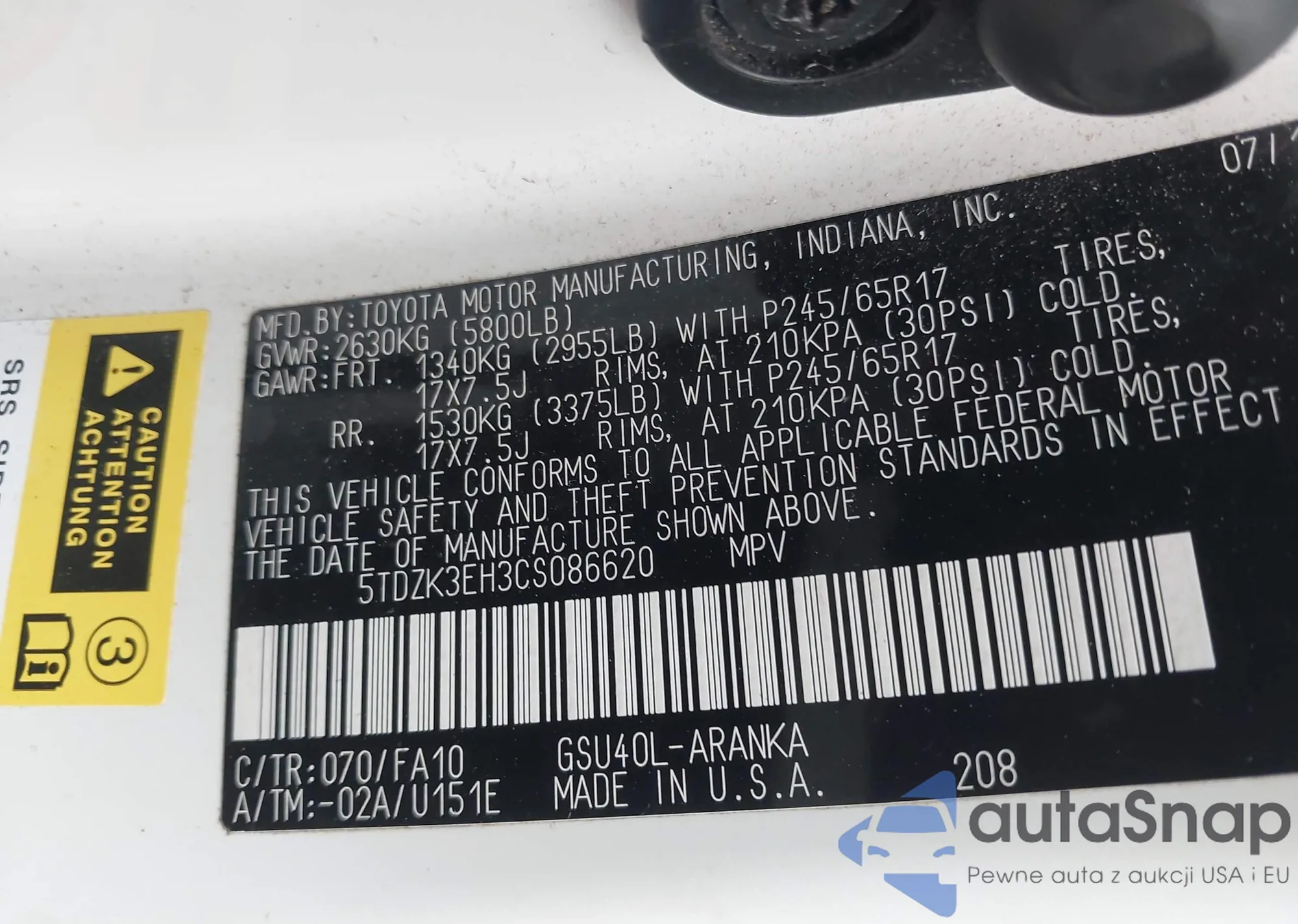 LOT: 43038420 VIN: 5TDZT38A42S079962