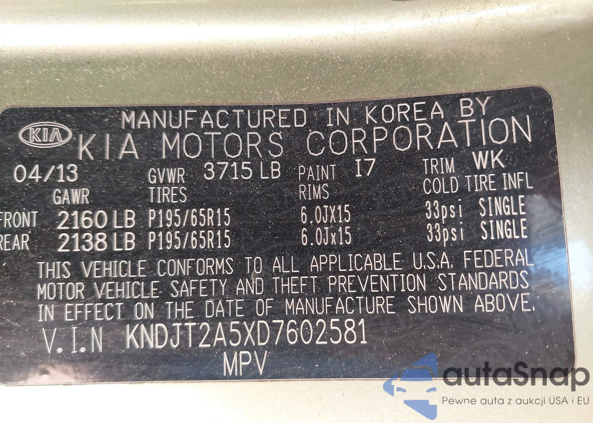 LOT: 42895331 VIN: KNDEPCAA5S7816710