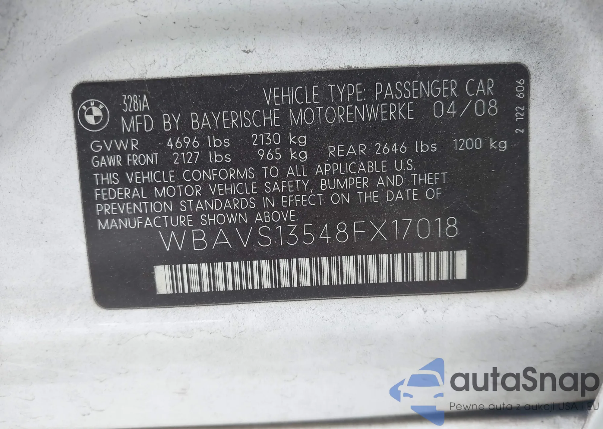 LOT: 43119535 VIN: WBAVB73527VF50345