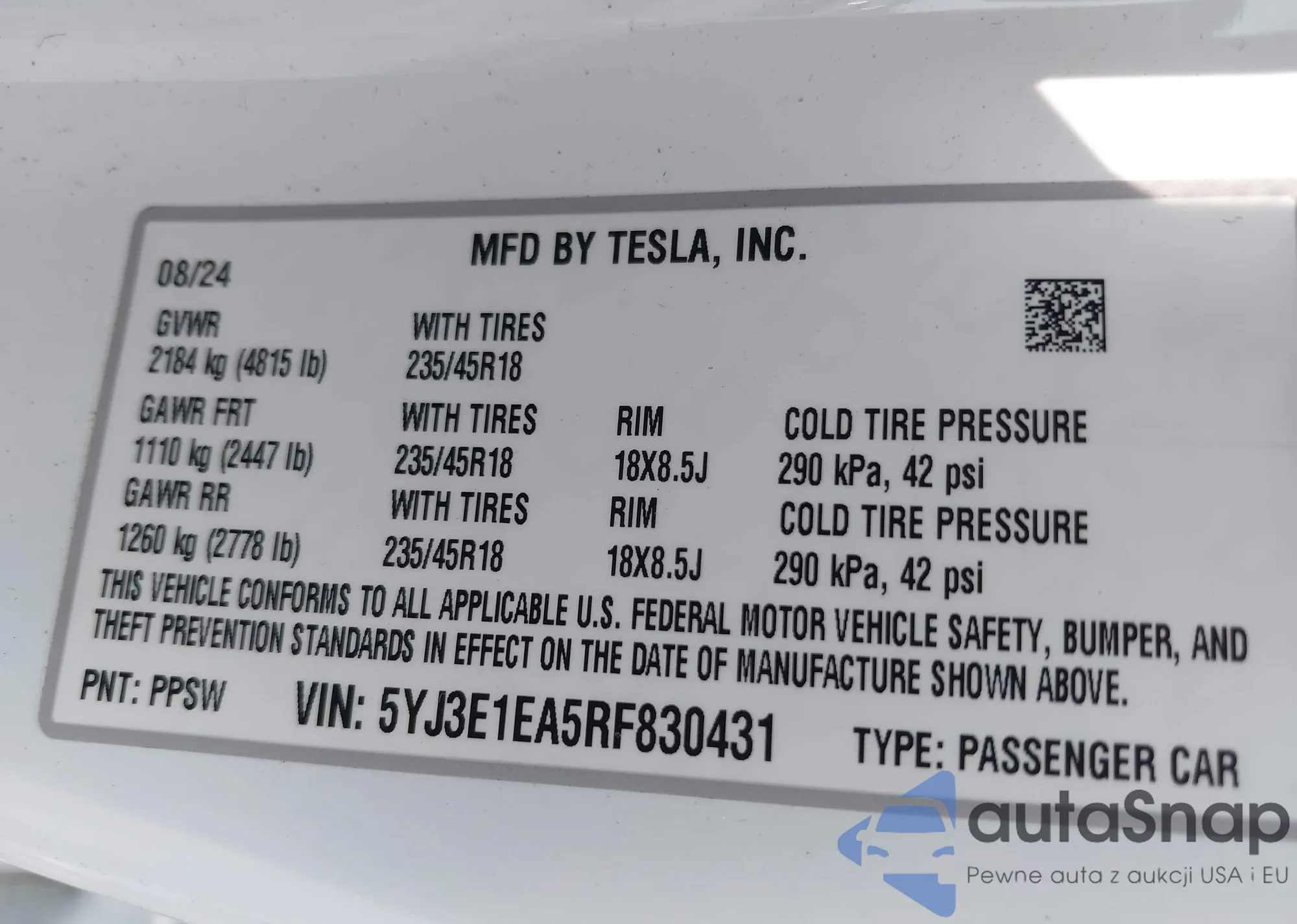 LOT: 43189954 VIN: 5NPEB4AC1BH024314