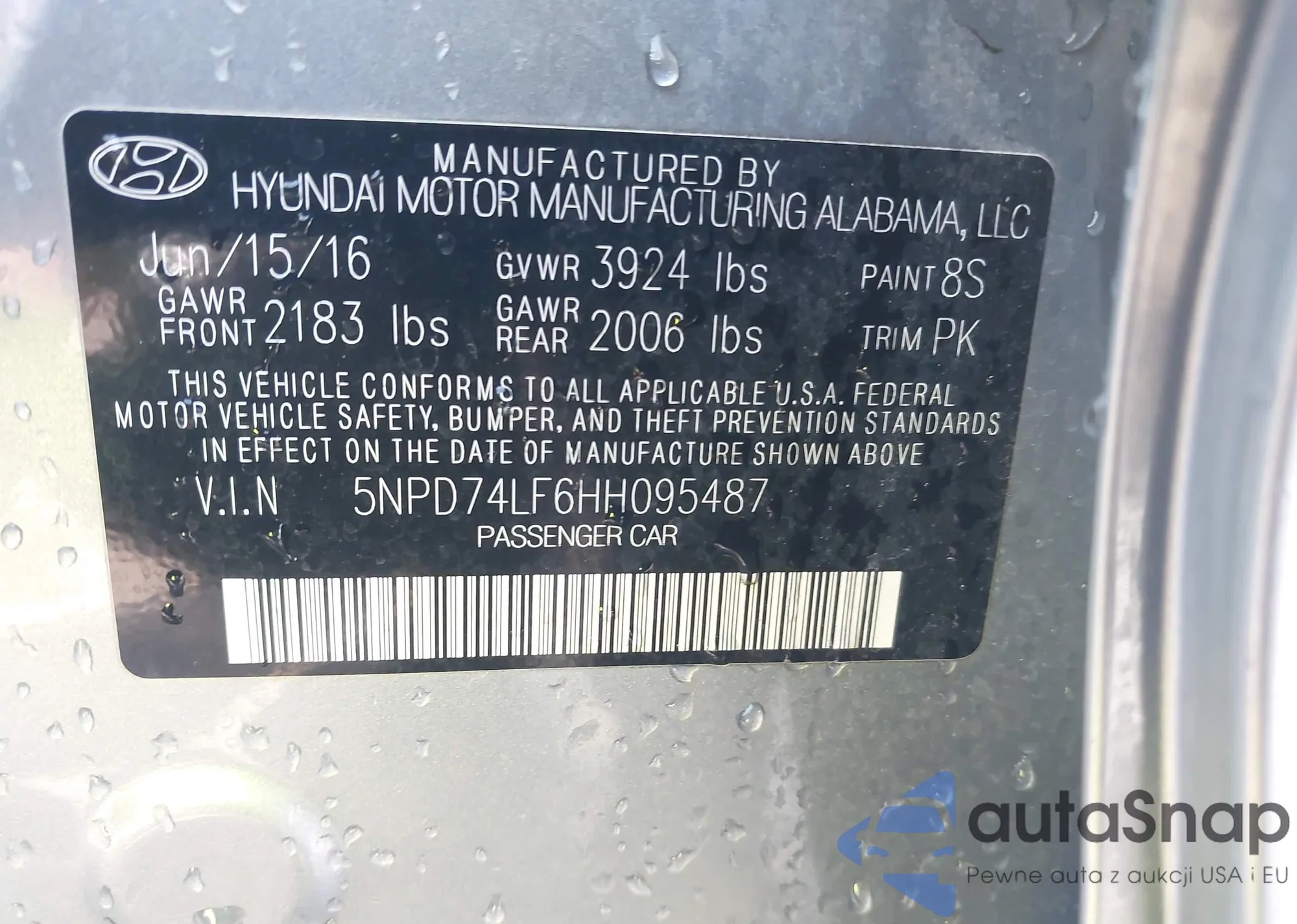 • VIN 5NPD74LF6HH095487