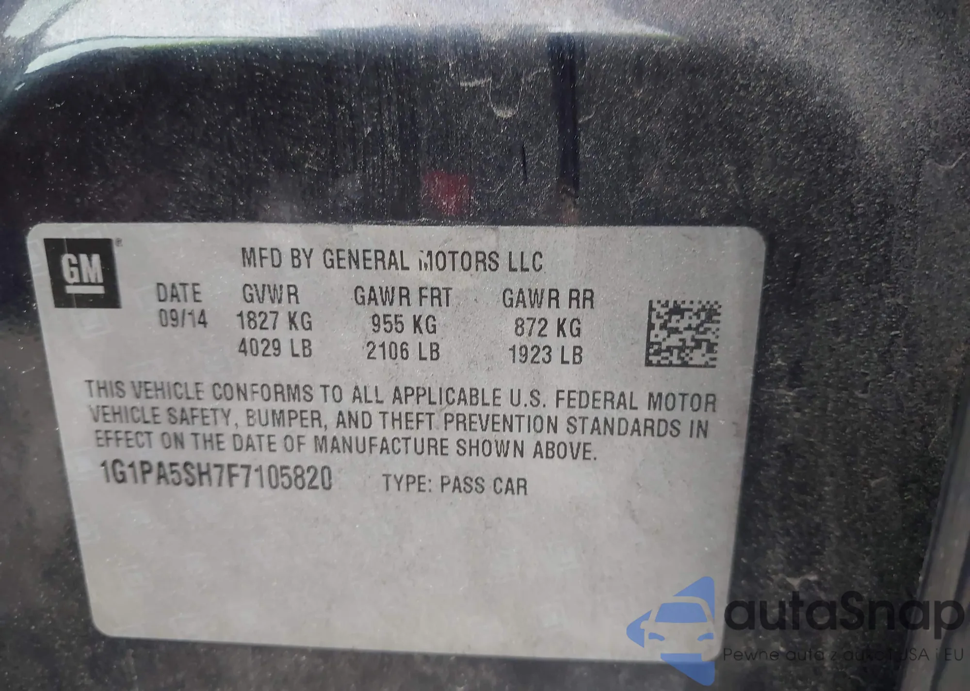 LOT: 42668737 VIN: 1G1PA5SH7F7105820