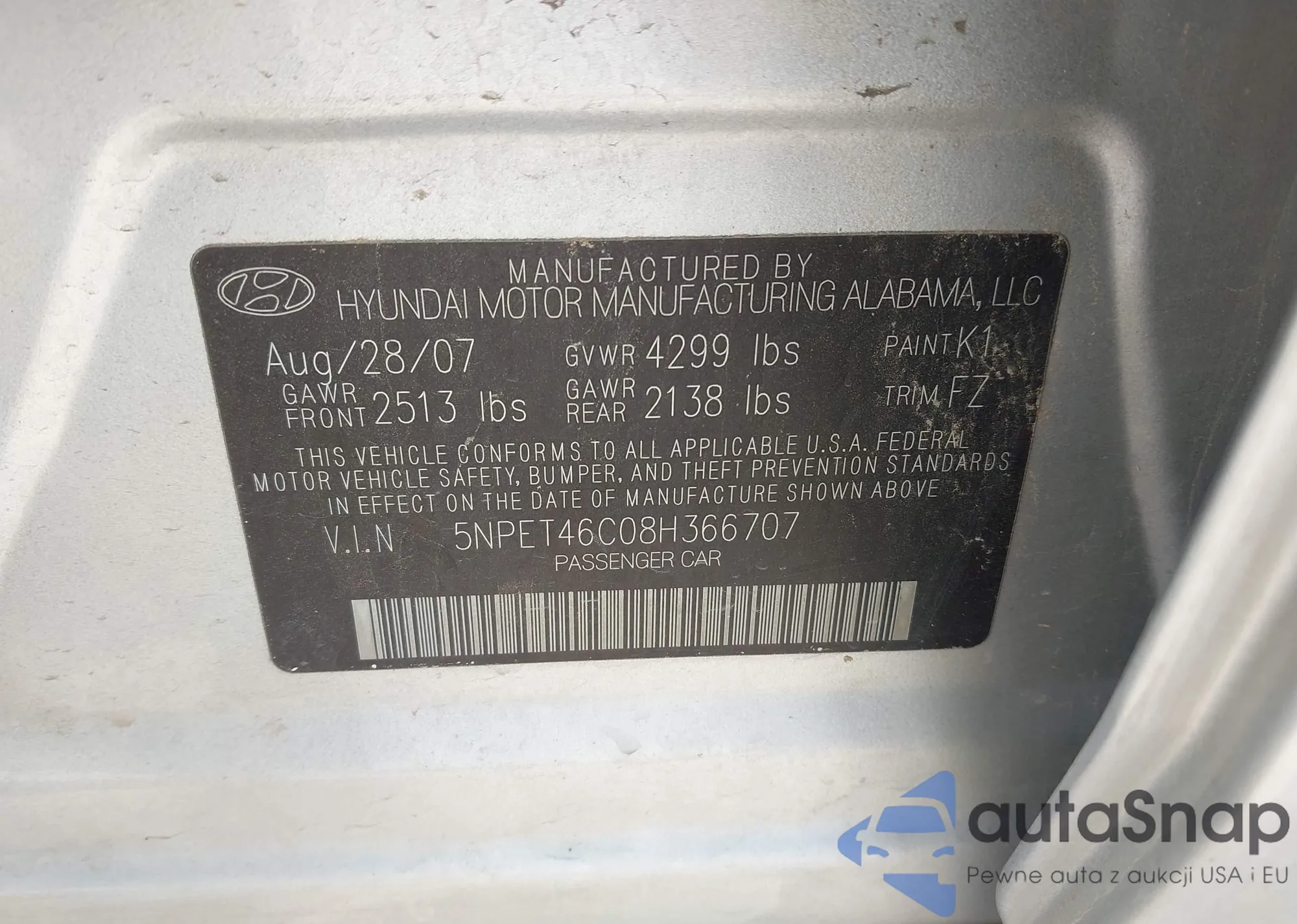 LOT: 41948093 VIN: 5NPET46C08H366707