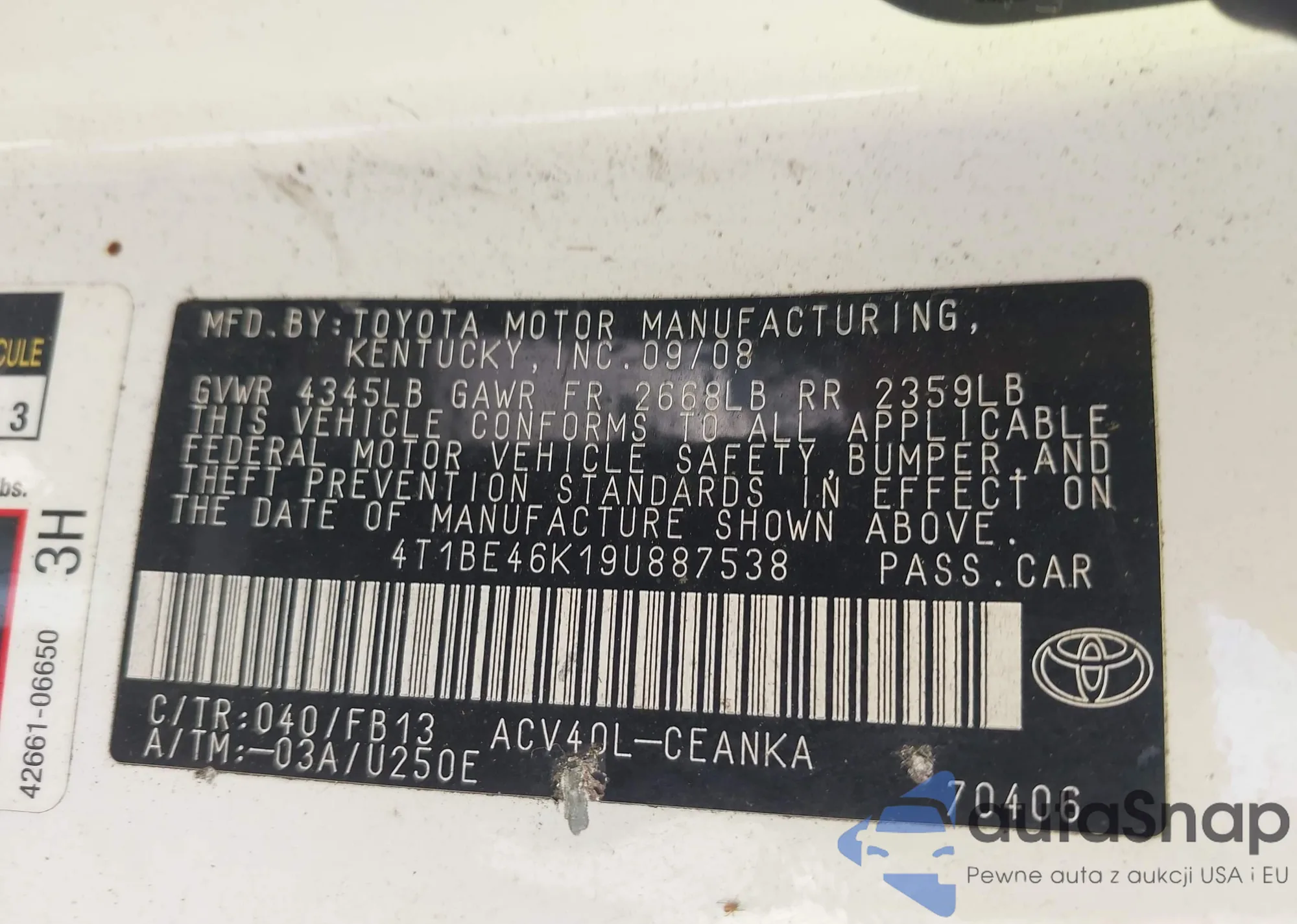 • VIN 4T1BE46K19U887538