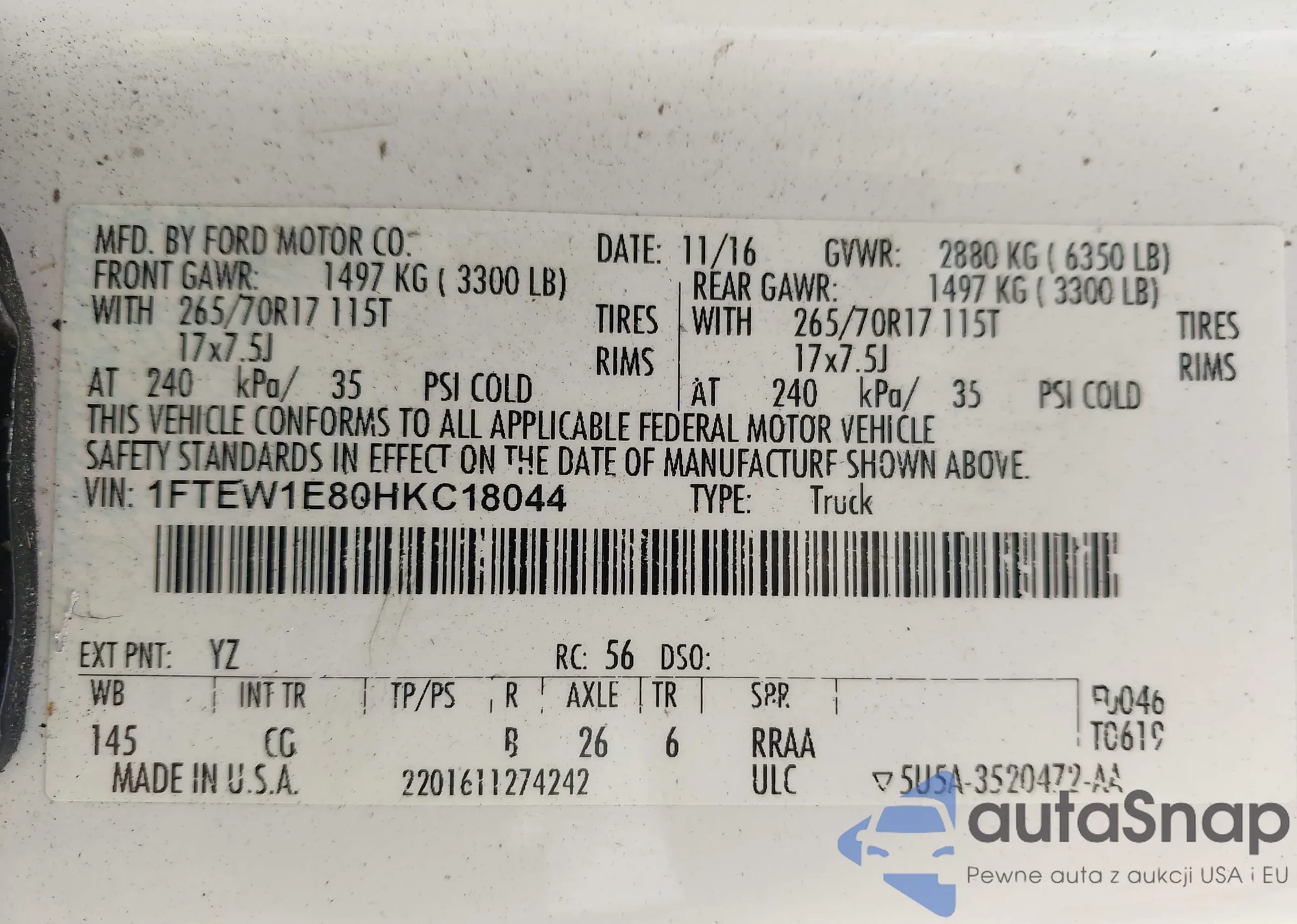 • VIN 1FTEW1E80HKC18044