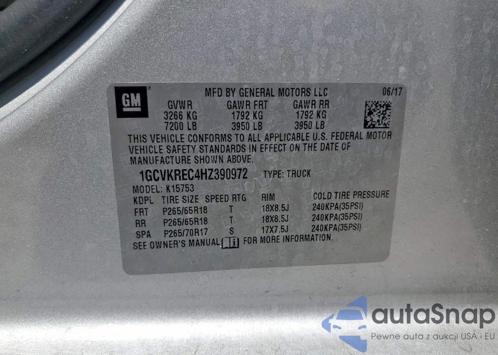 • VIN 1GCVKREC4HZ390972